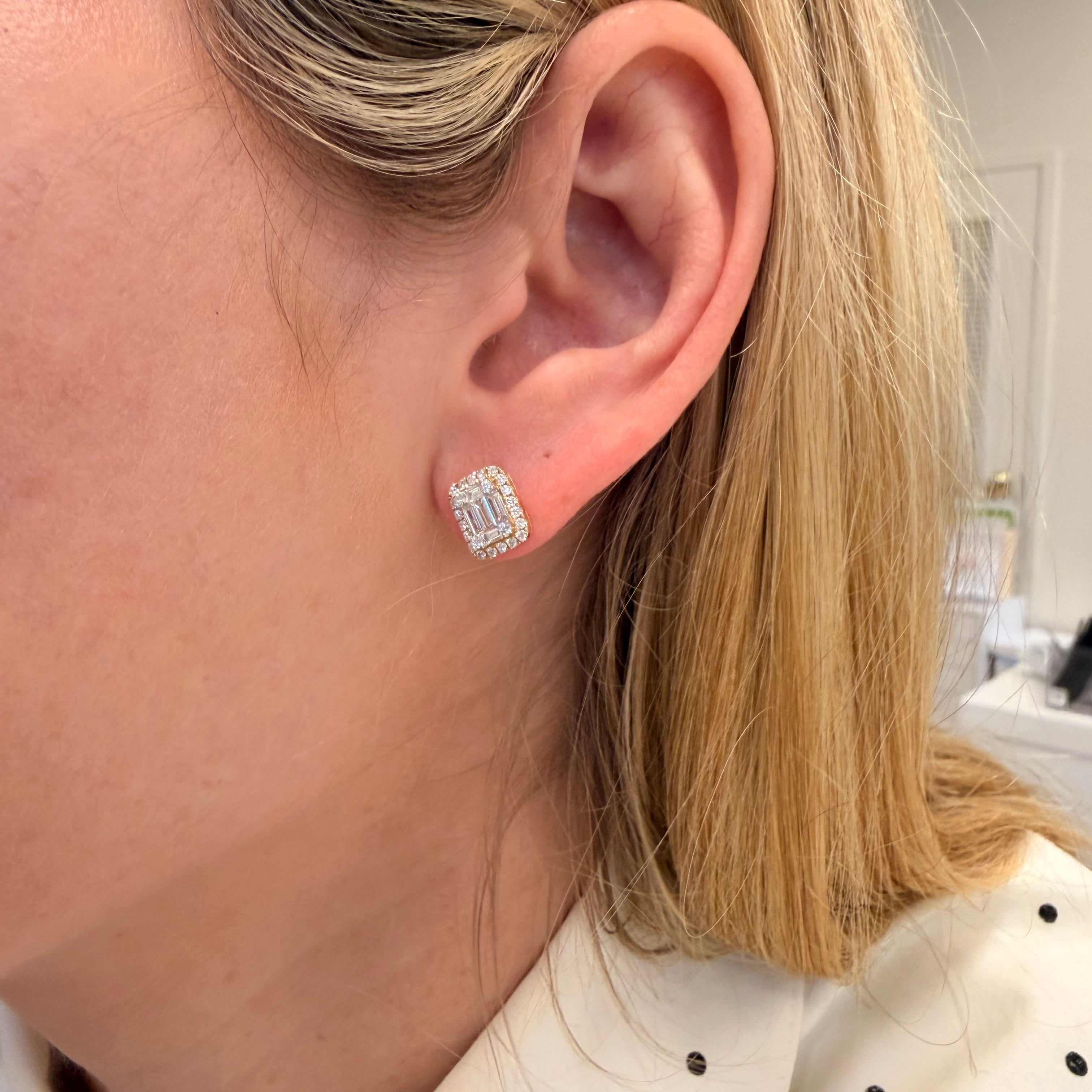 18K Yellow Gold Cluster Diamond Studs