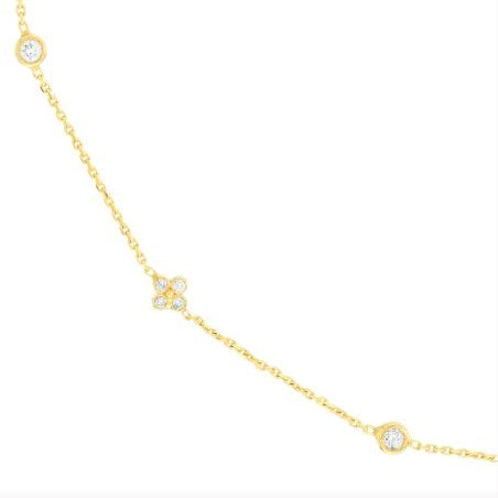 14K Yellow Gold Diamond Bezel and Cluster Stations Necklace