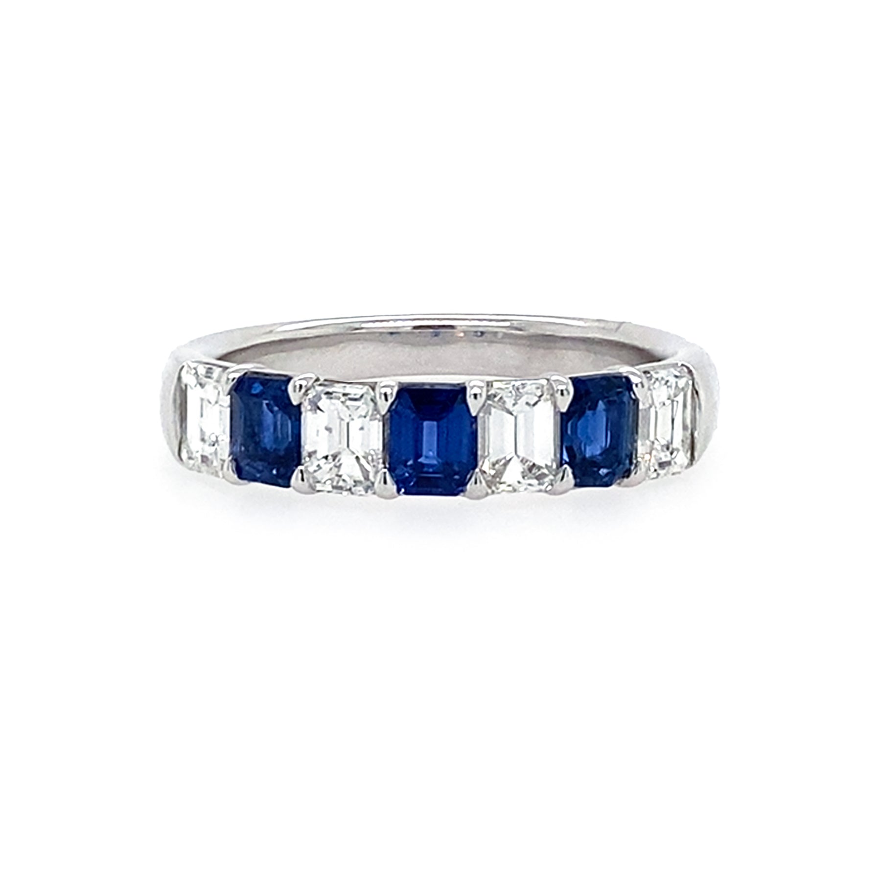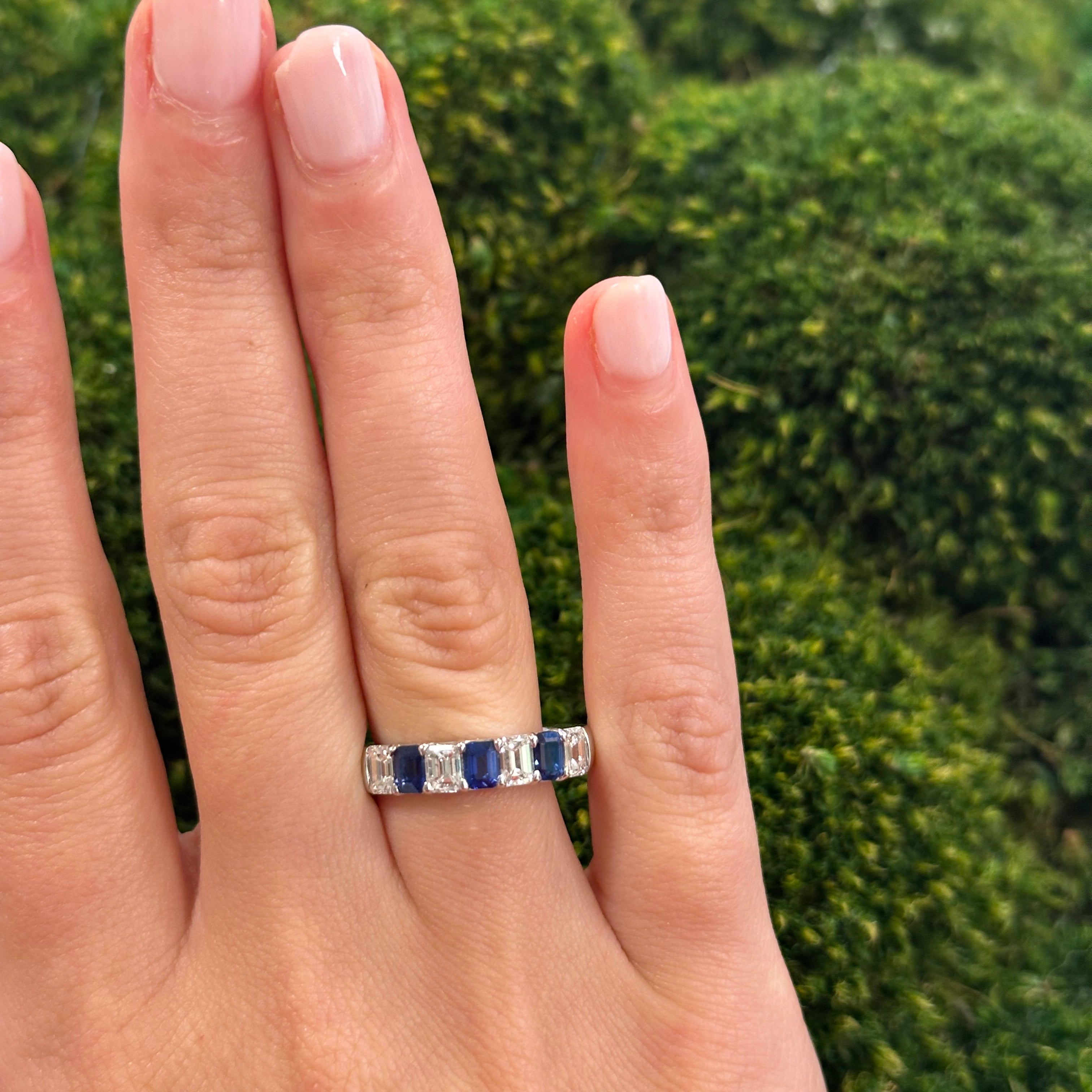 Platinum Sapphire and Diamond Alternating Emerald Cut Band