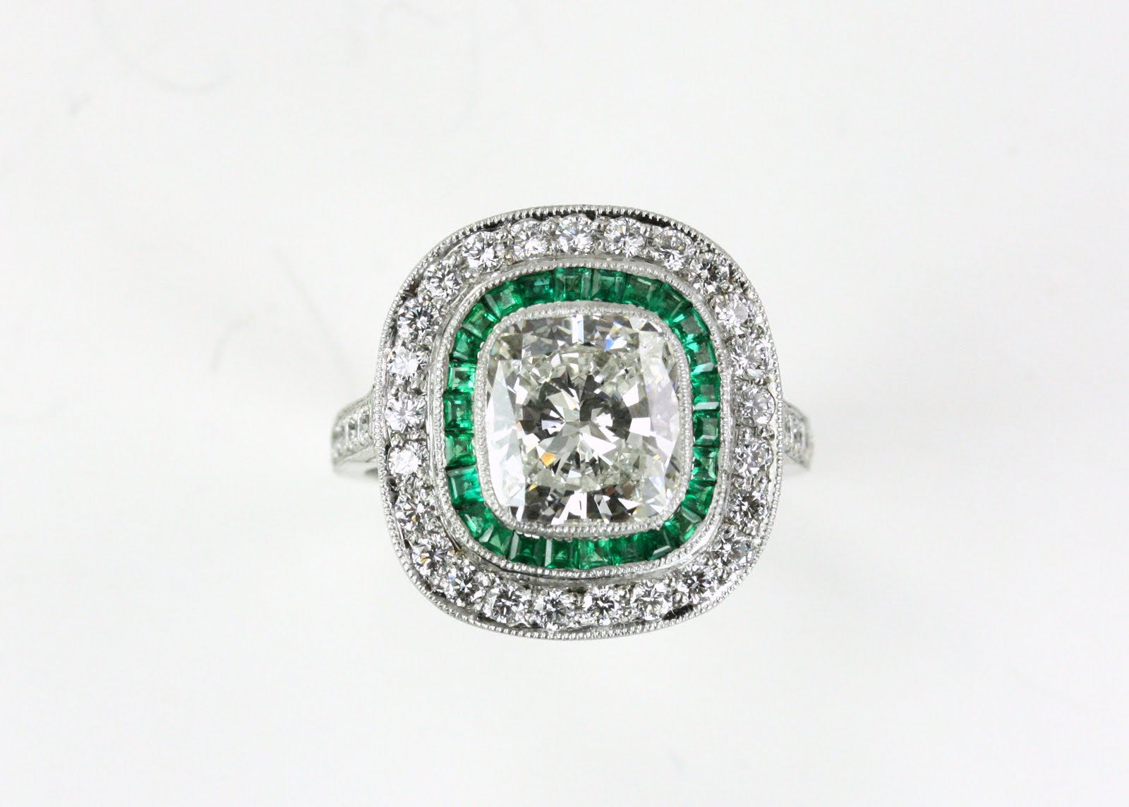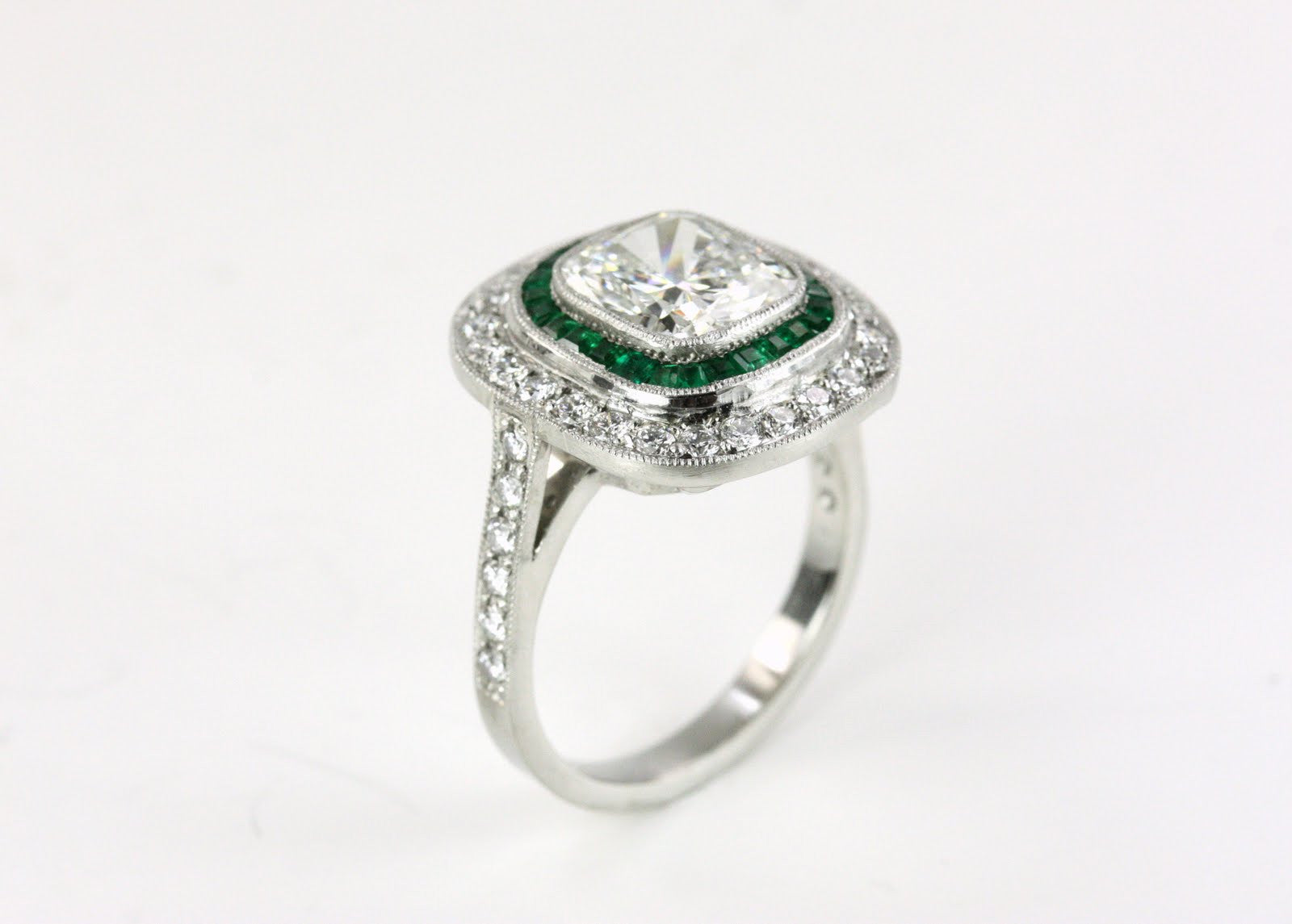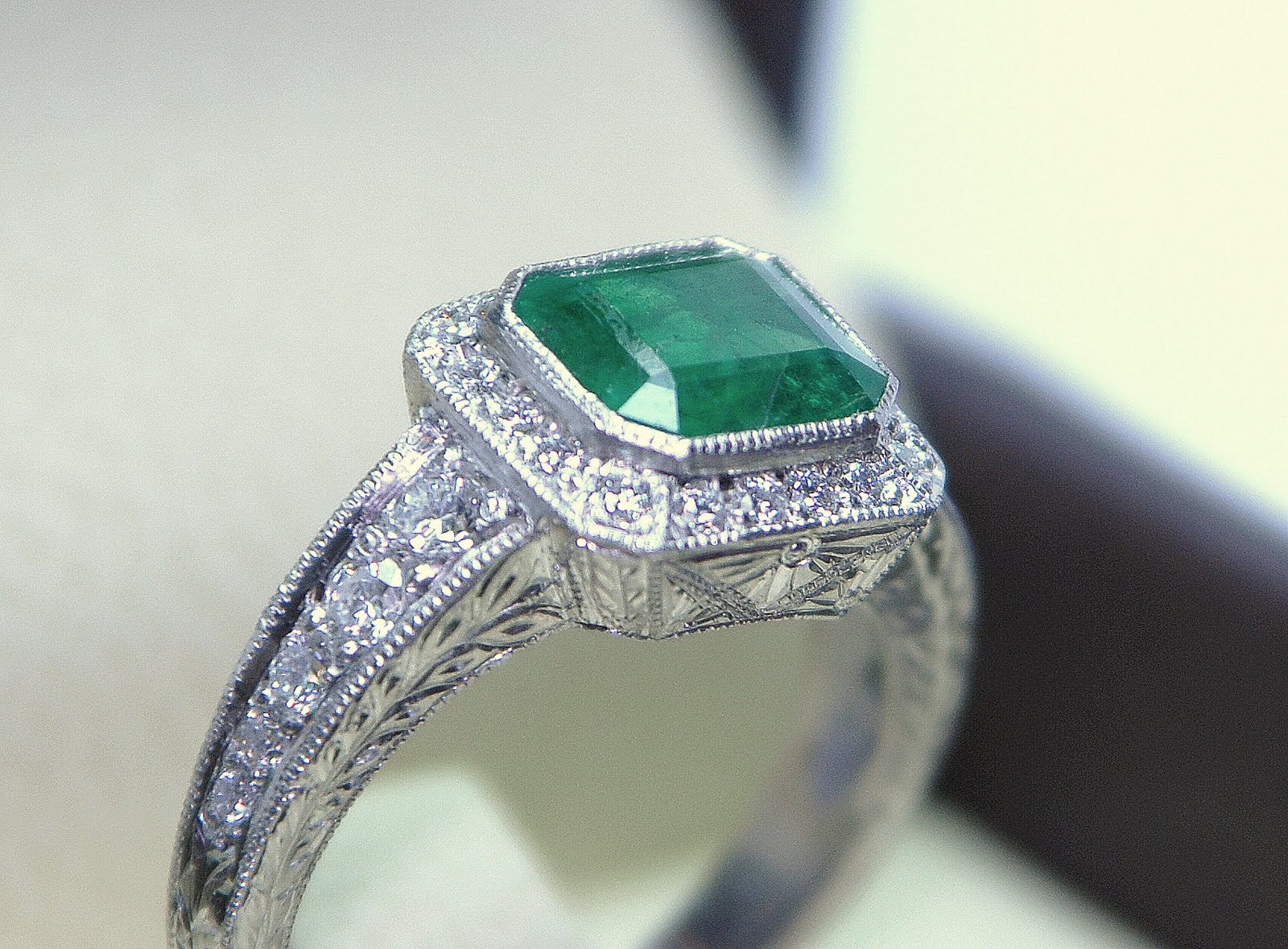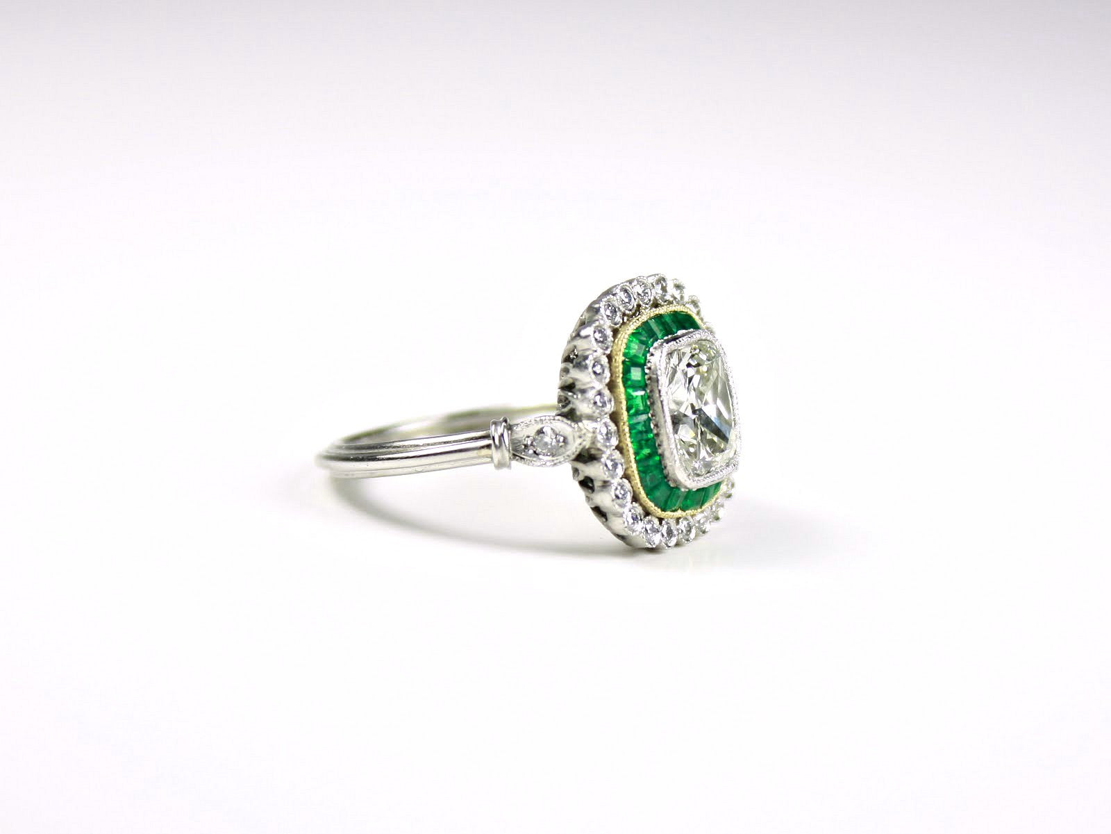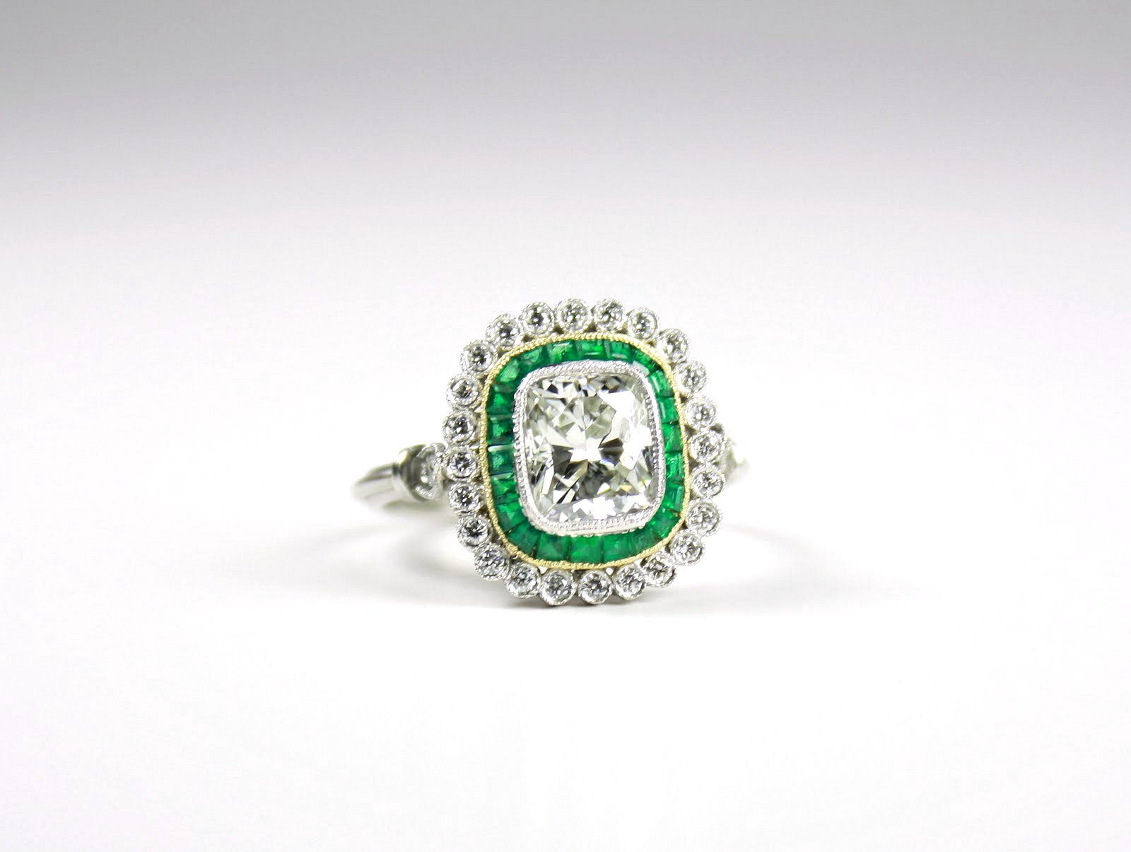 Colored Stones - Asscher Cut Diamond and Emerald Ring