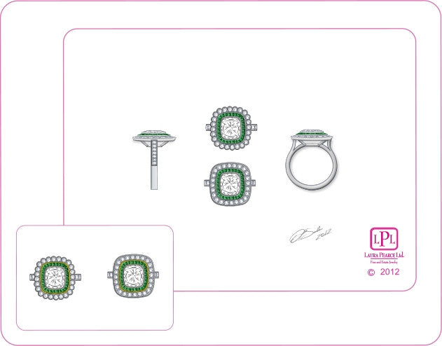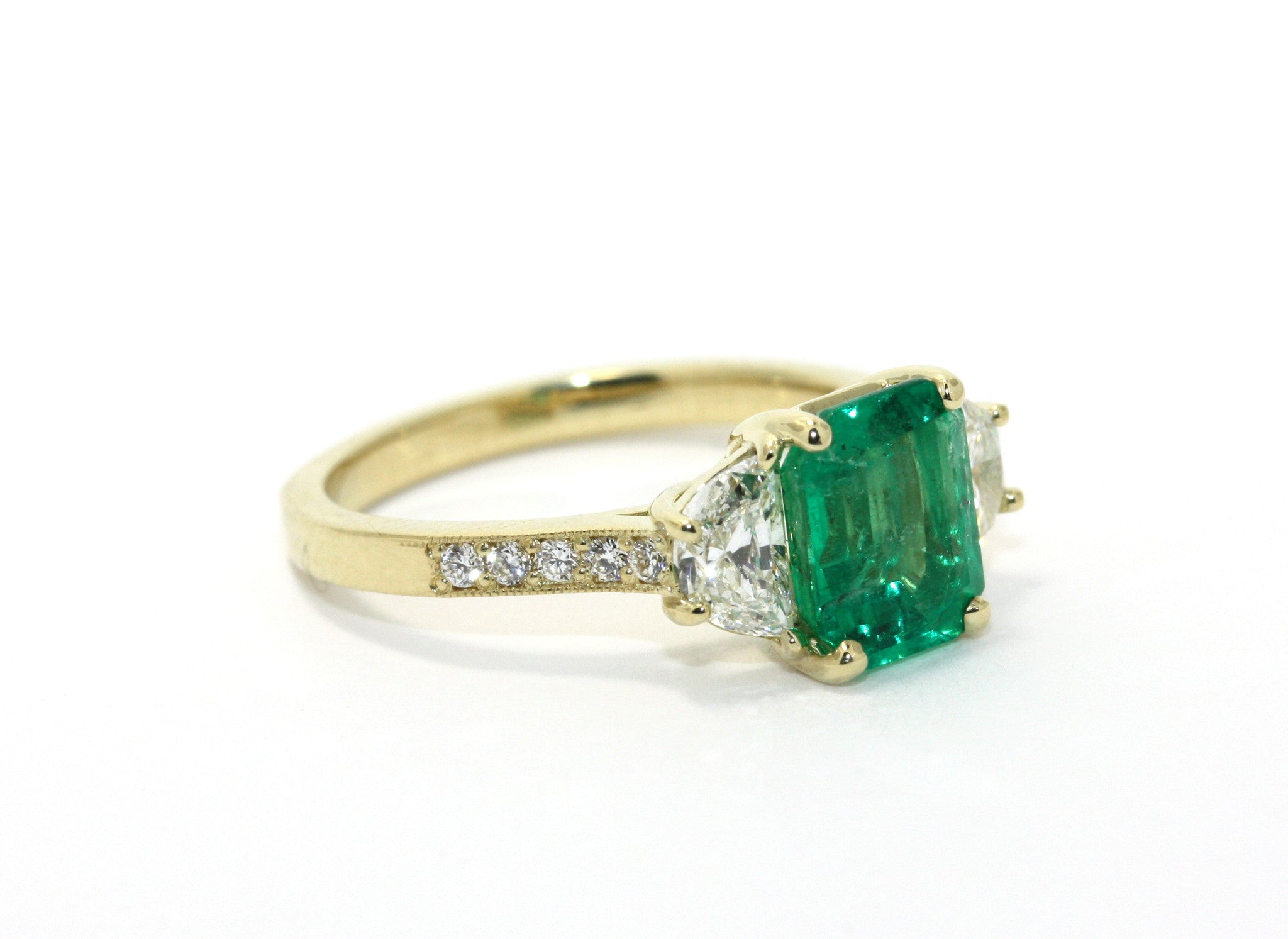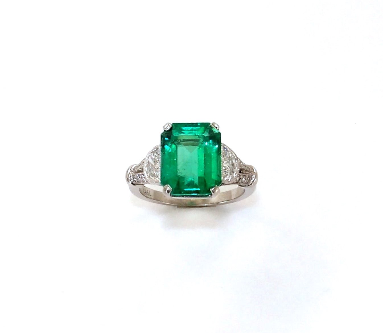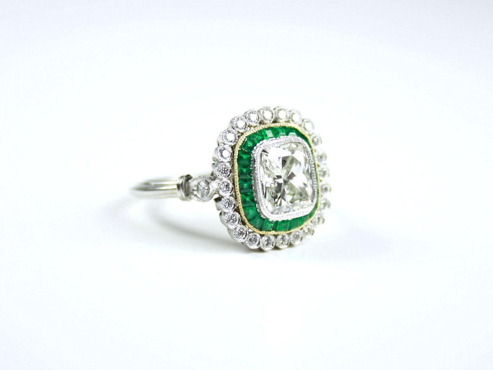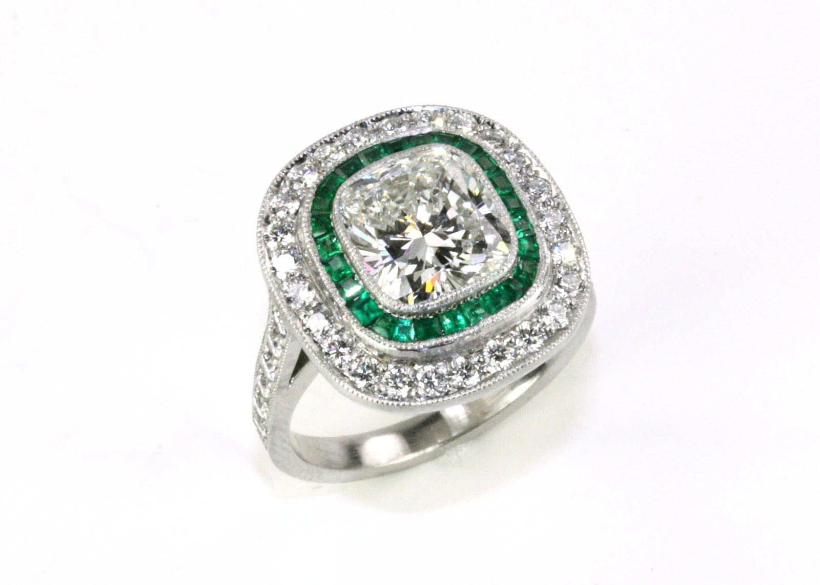 Colored Stones - Asscher Cut Diamond and Emerald Ring