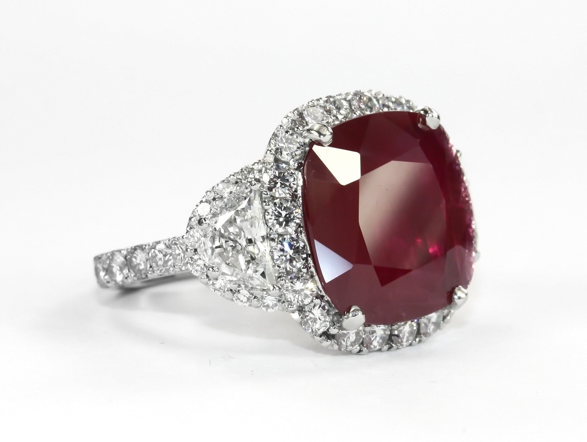 18k Yellow Gold Asscher Cut Diamond and Ruby Ring