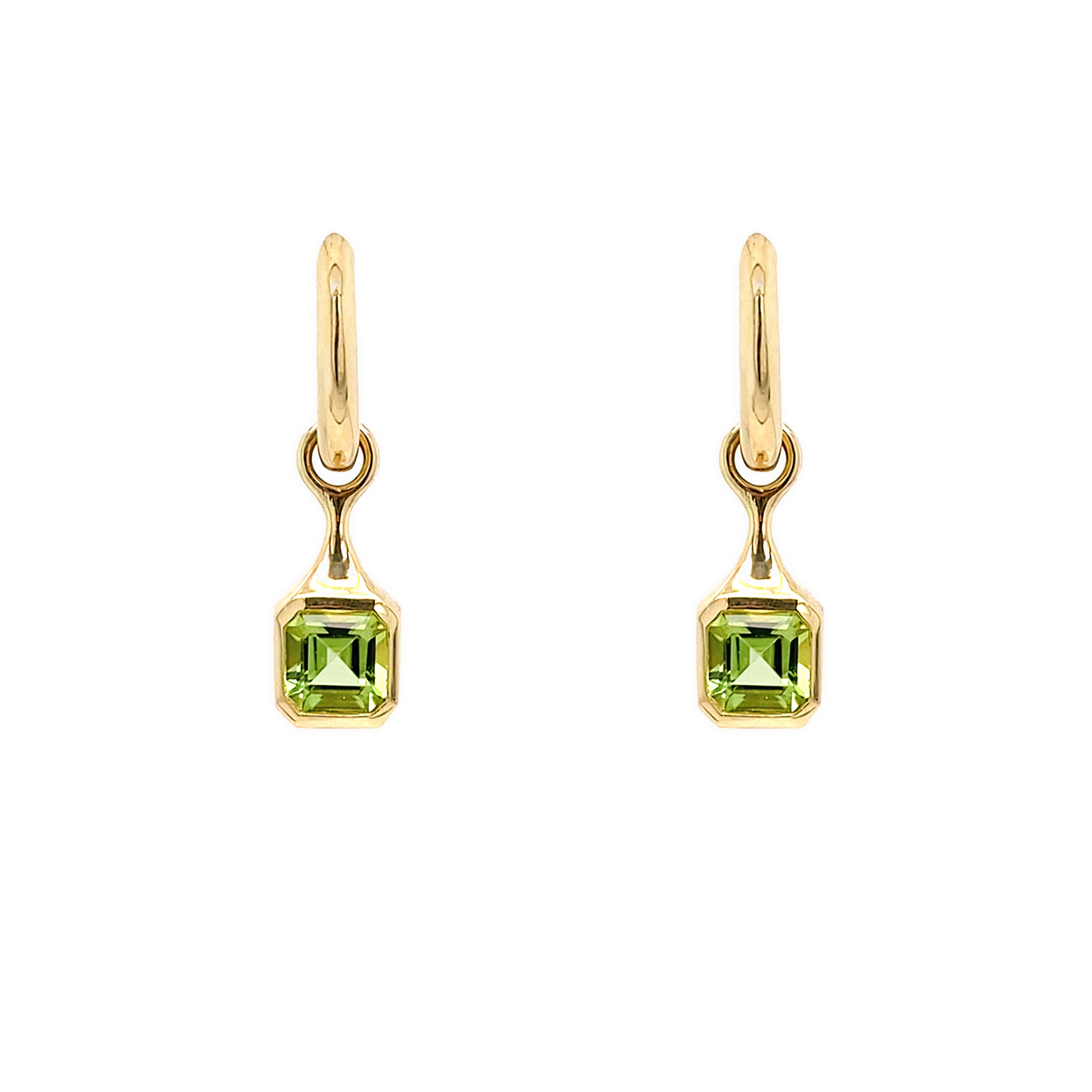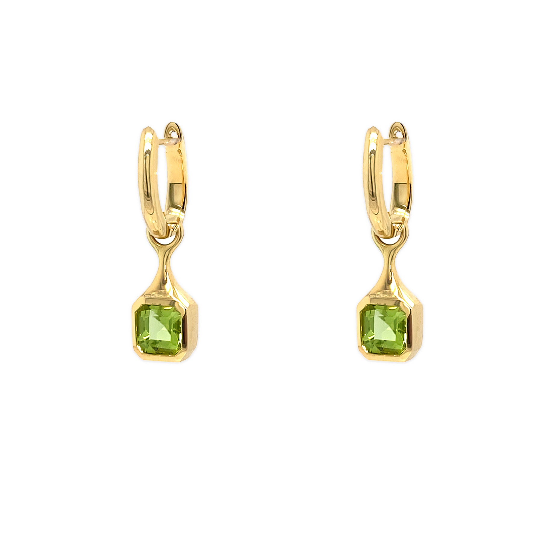 18K Yellow Gold Cushion Cut Peridot Drop Earrings