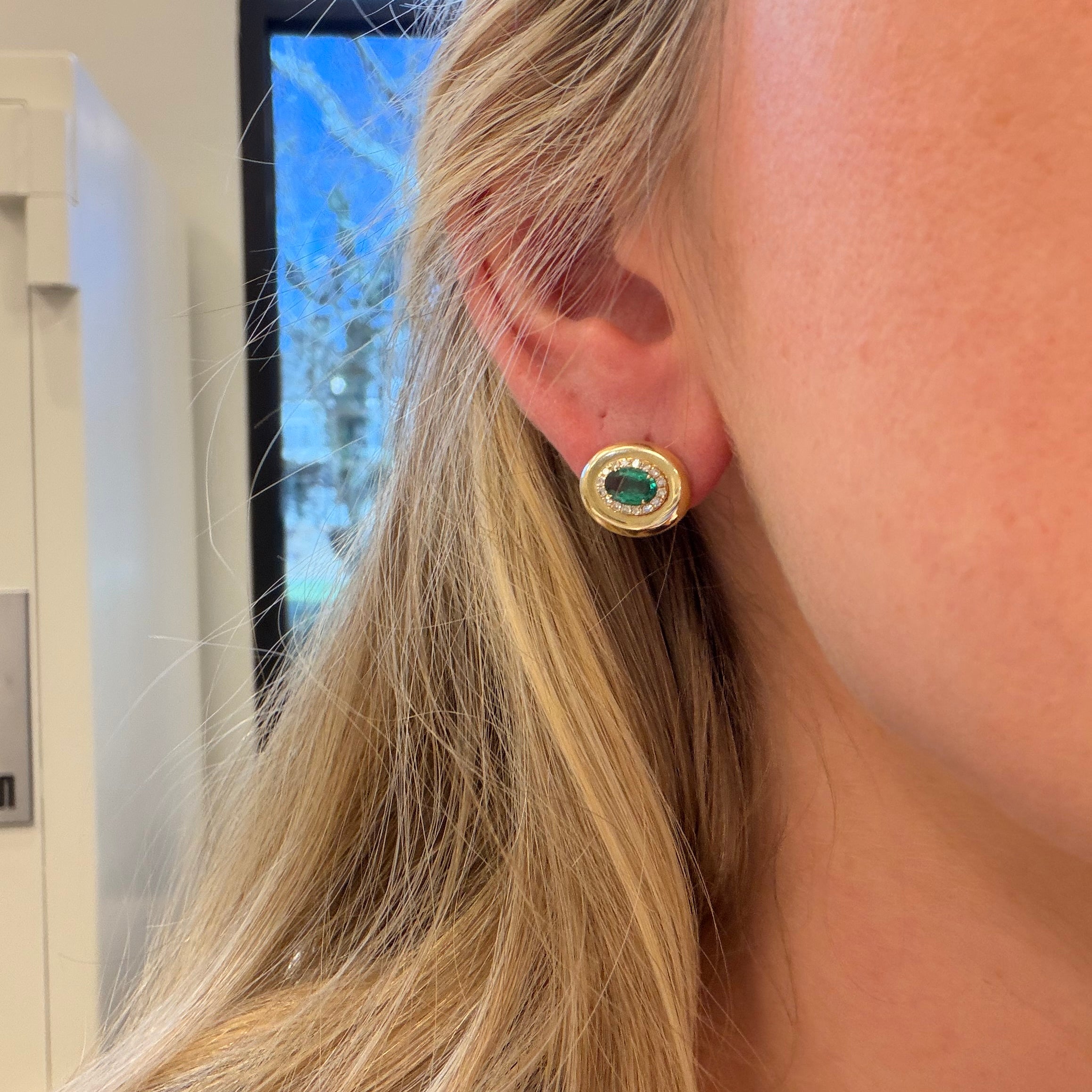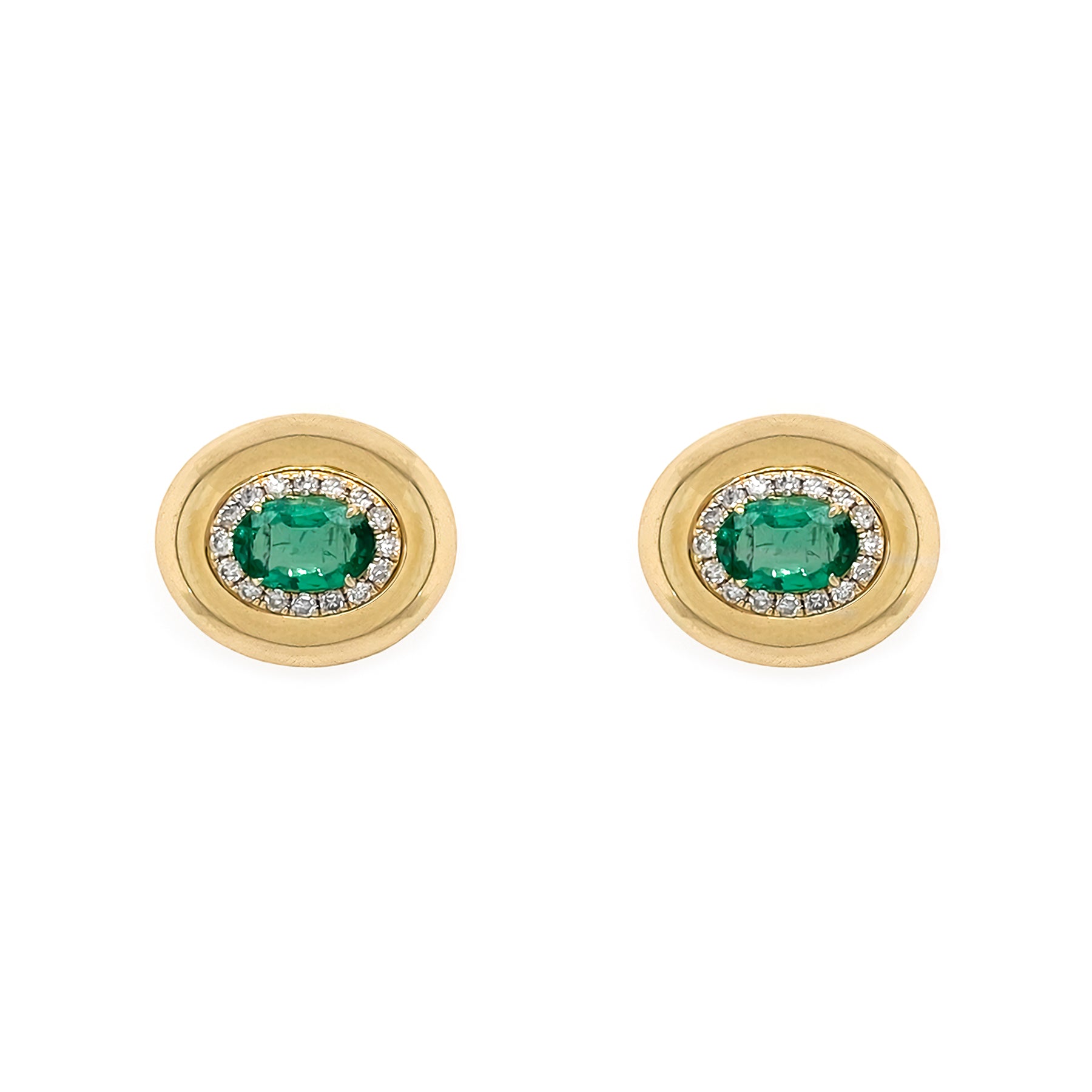14K Yellow Gold Emerald Bezel Earrings with Diamonds