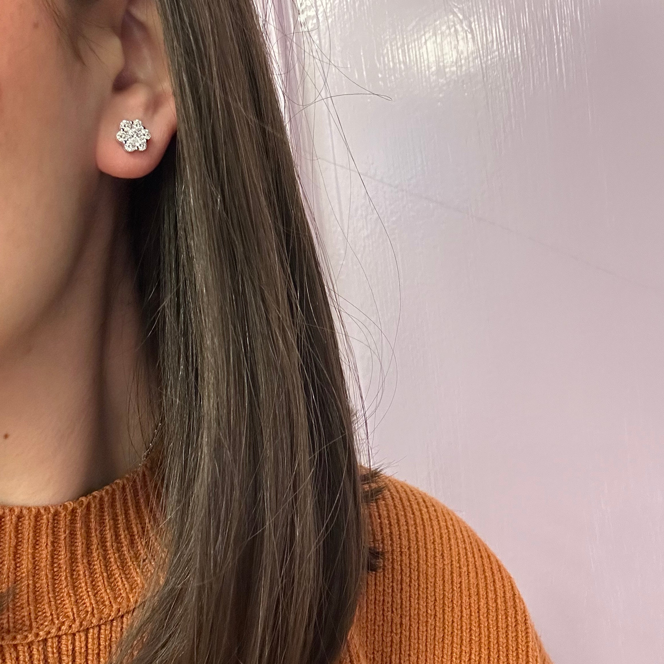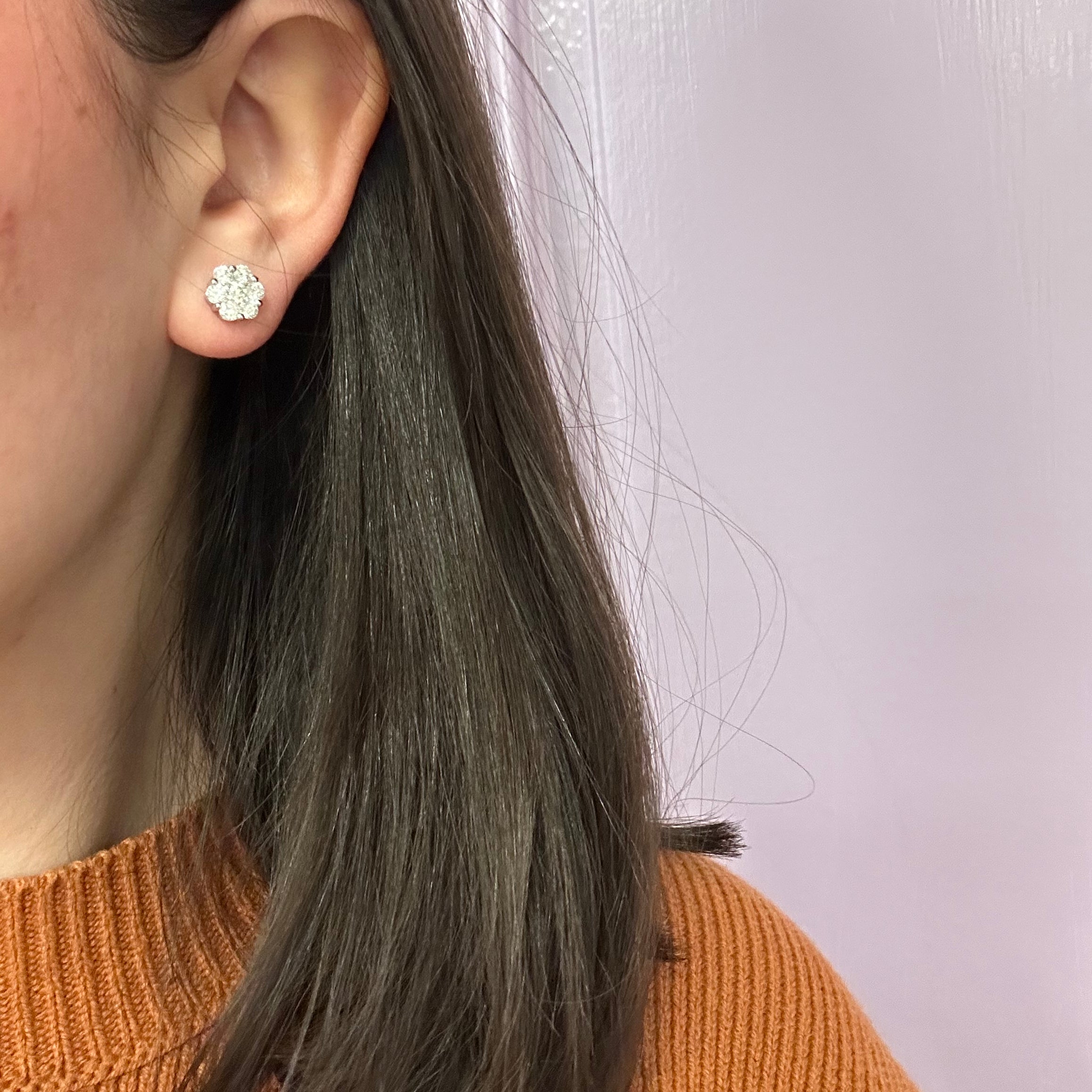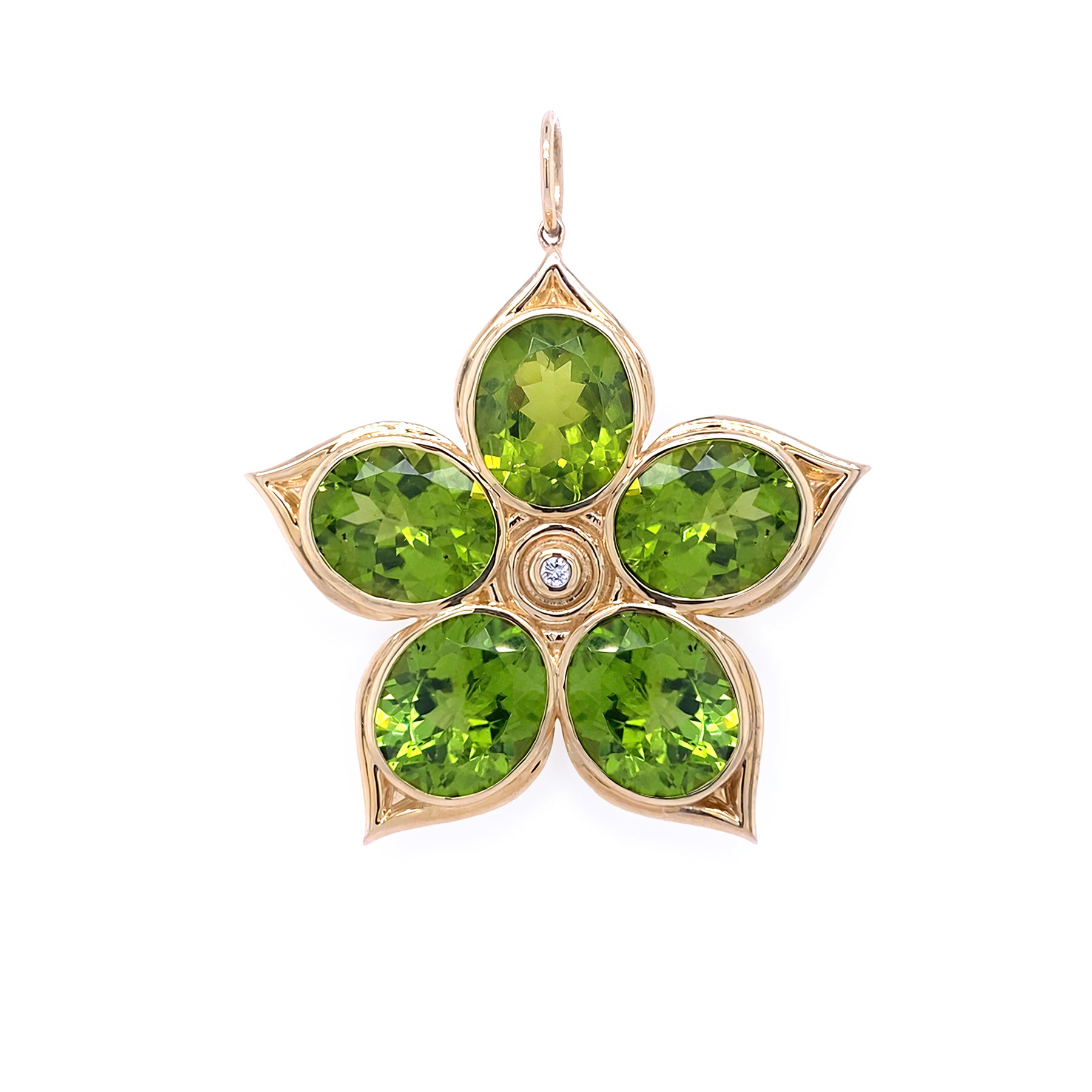 14K Yellow Gold Emerald Flower Earrings with Diamonds