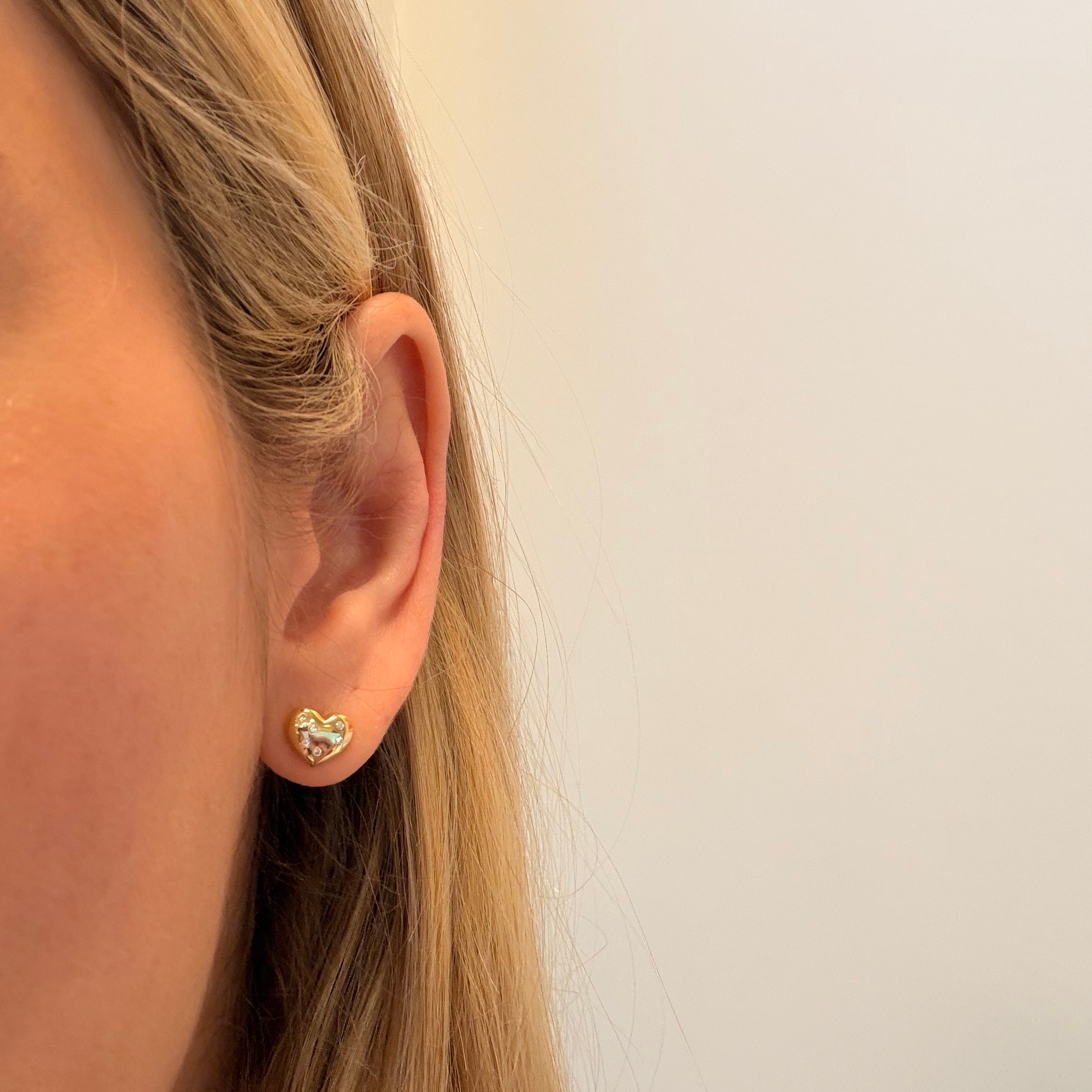 14K Yellow Gold Scattered Diamond Heart Studs
