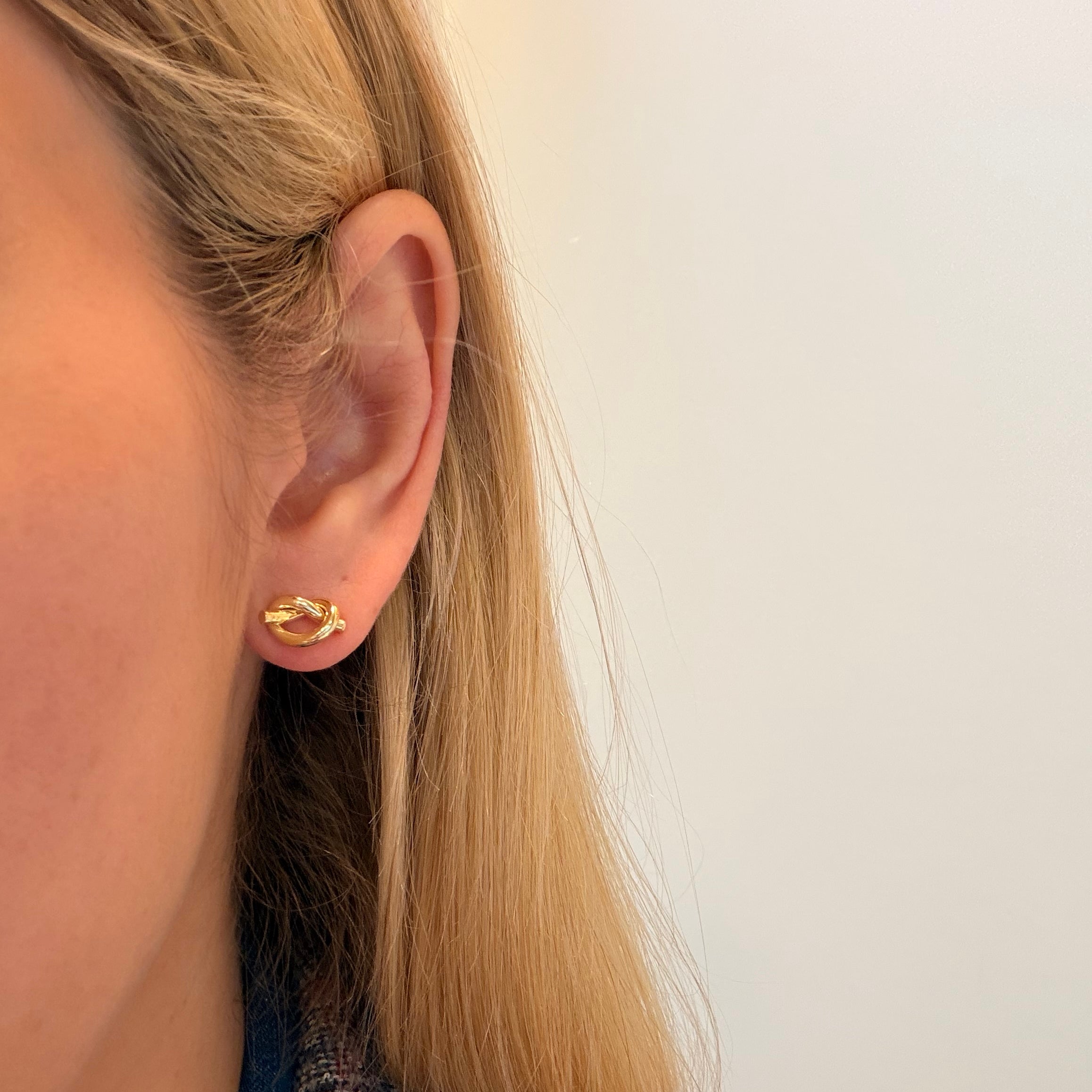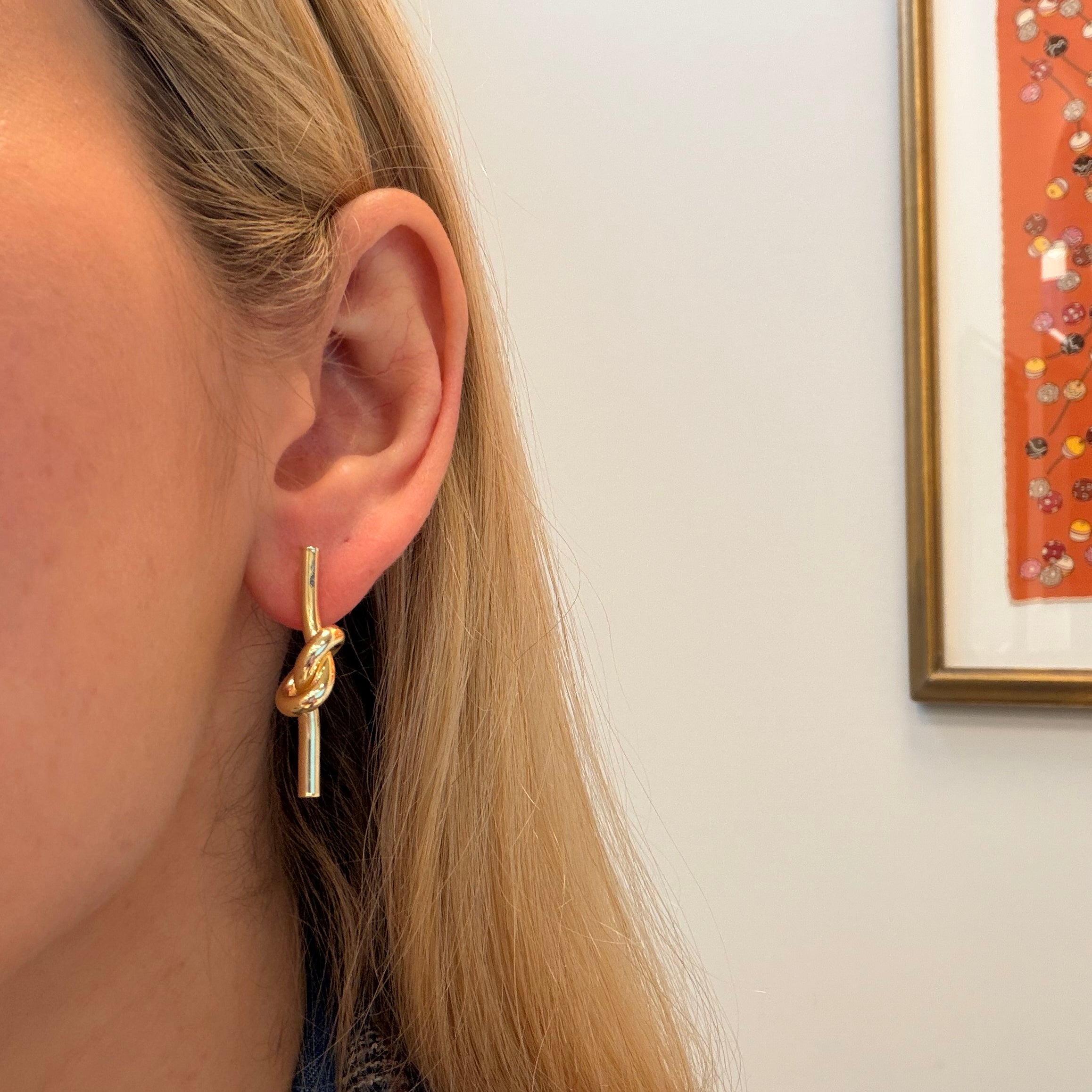 14K Yellow God Tube Love Knot Earrings