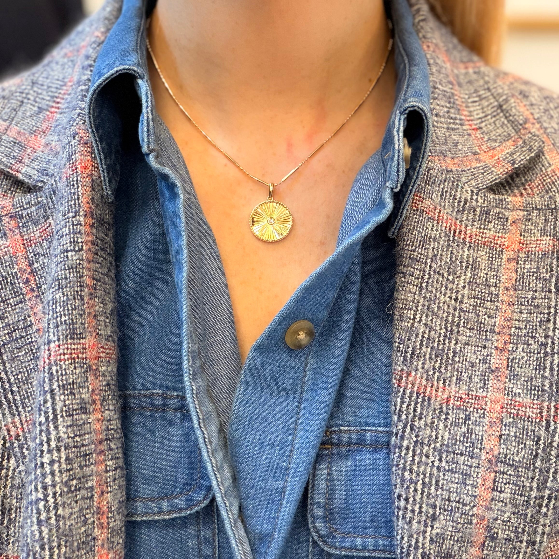 14K YG Round Fluted Pendant with Diamond