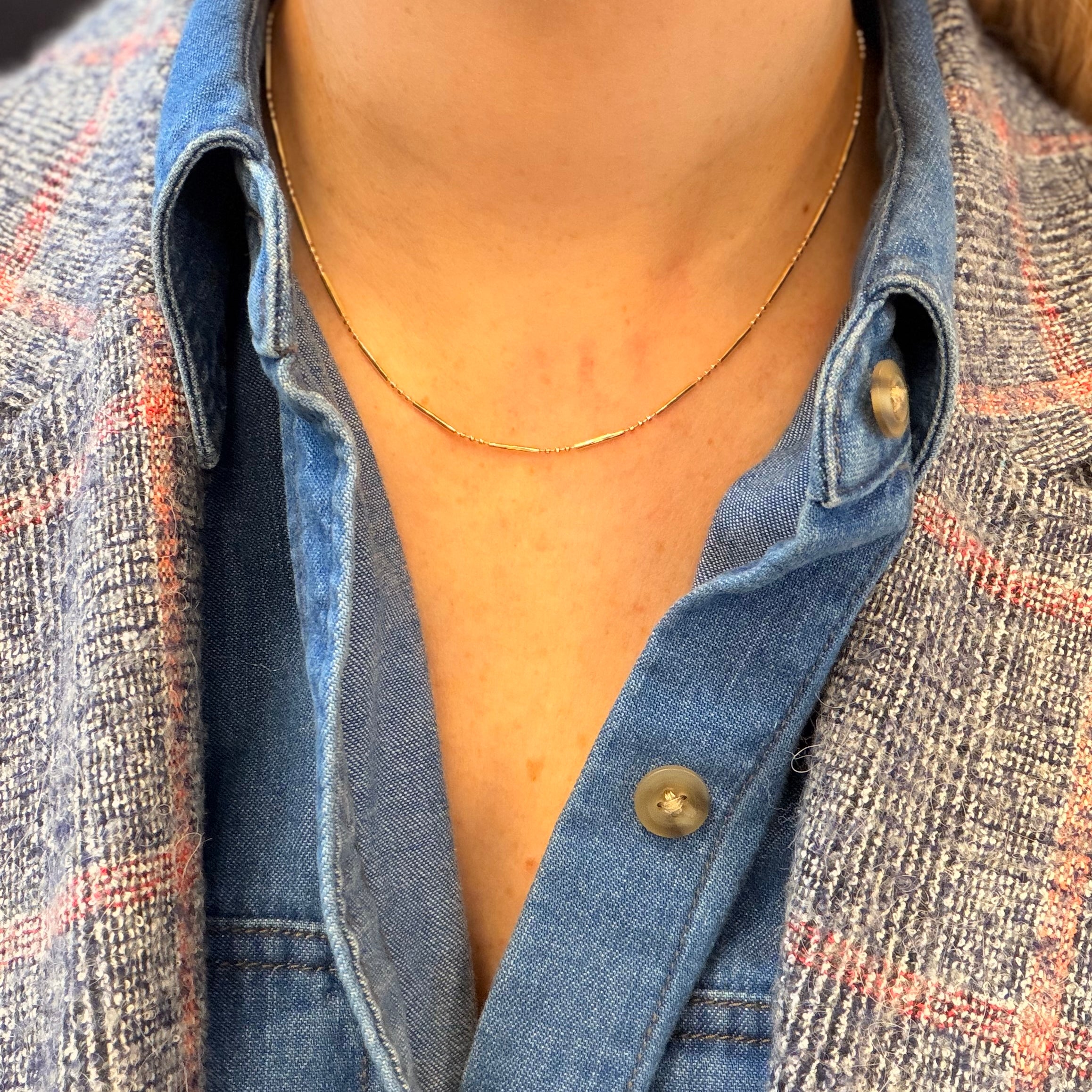 14K YG 1.5mm Bead and Bar Chain