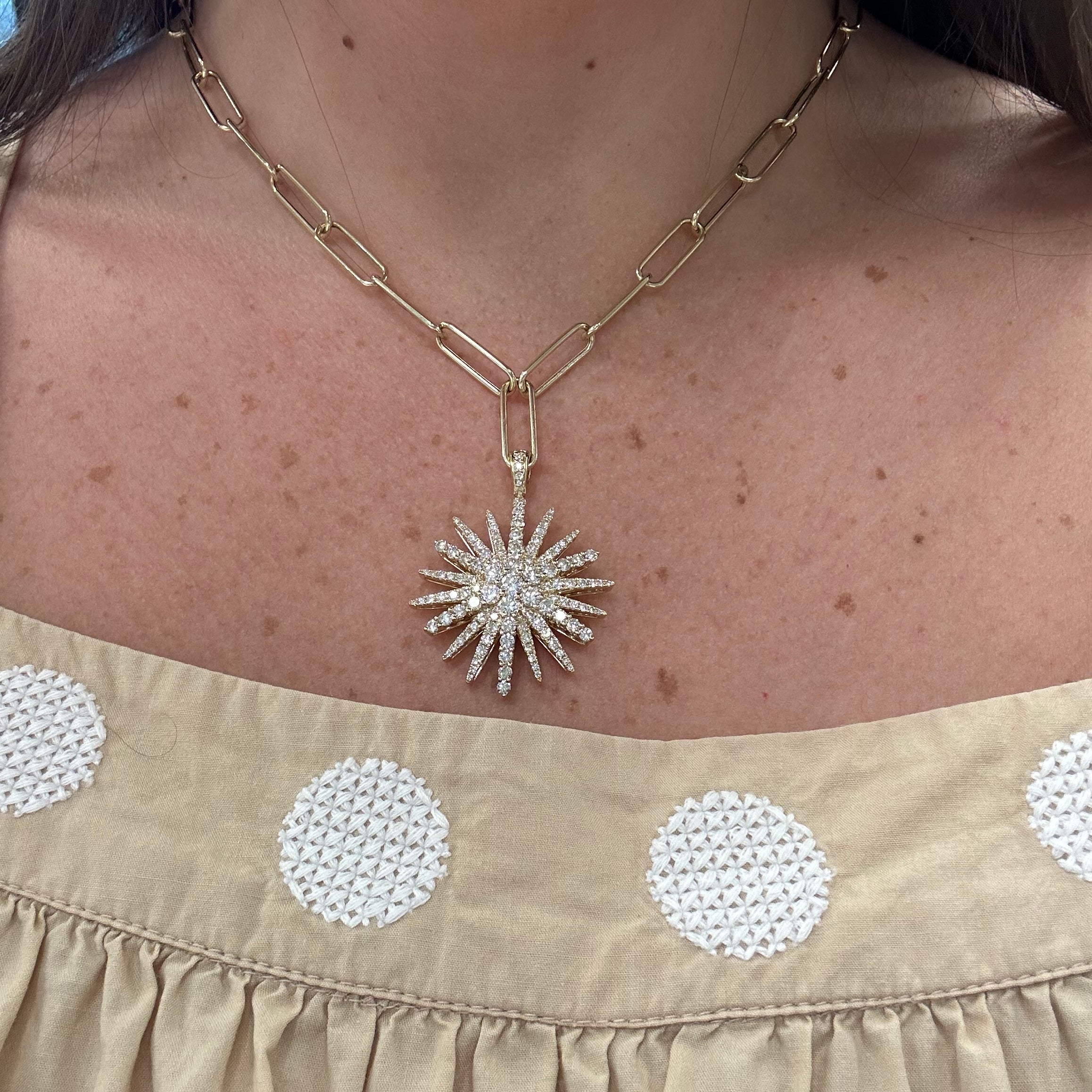 18K Yellow Gold Diamond Starburst Pendant with Bail