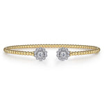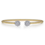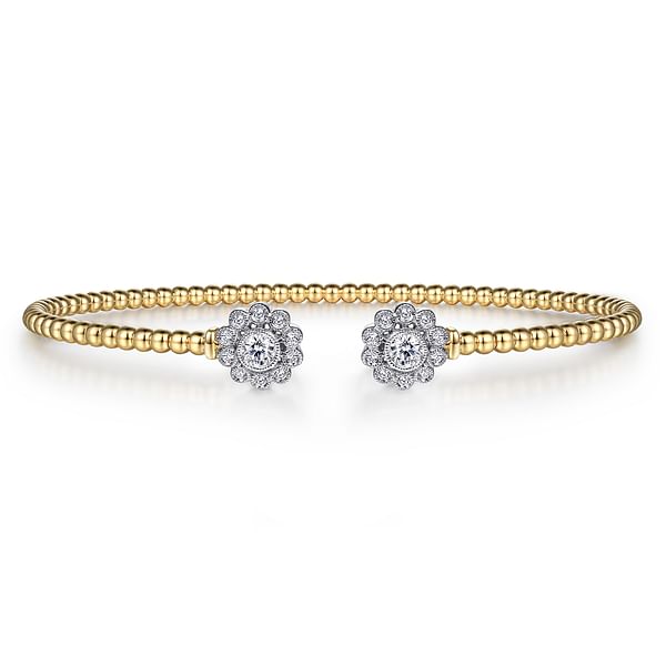 14K White Yellow Gold Bujukan Split Cuff Bracelet with Diamond Flowers