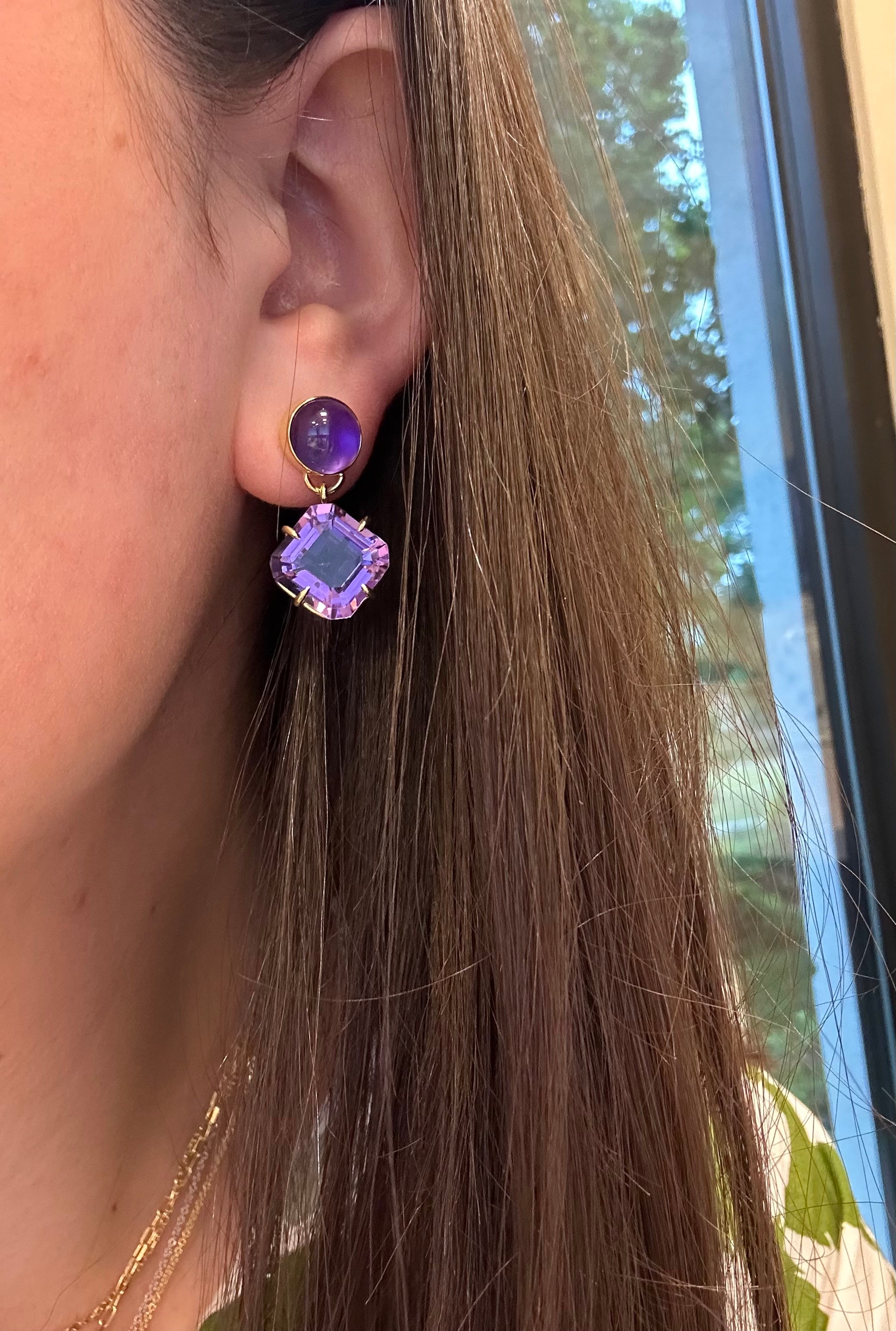 14K Yellow Gold Amethyst Drop Earring