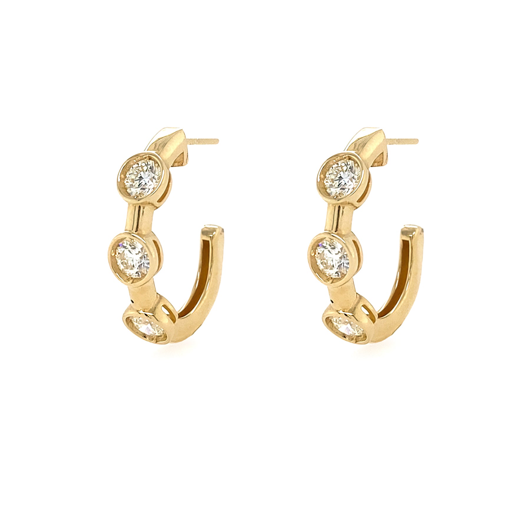 14K YG 3 Stone Bezel Diamond Hoops