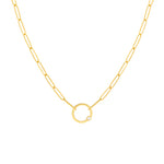 14K Yellow Gold Bezel Diamond Ring Paper Clip Necklace