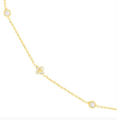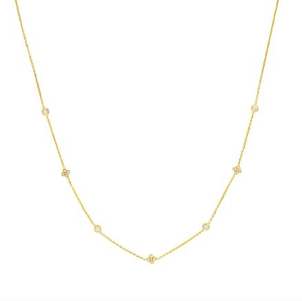 14K Yellow Gold Diamond Bezel and Cluster Stations Necklace