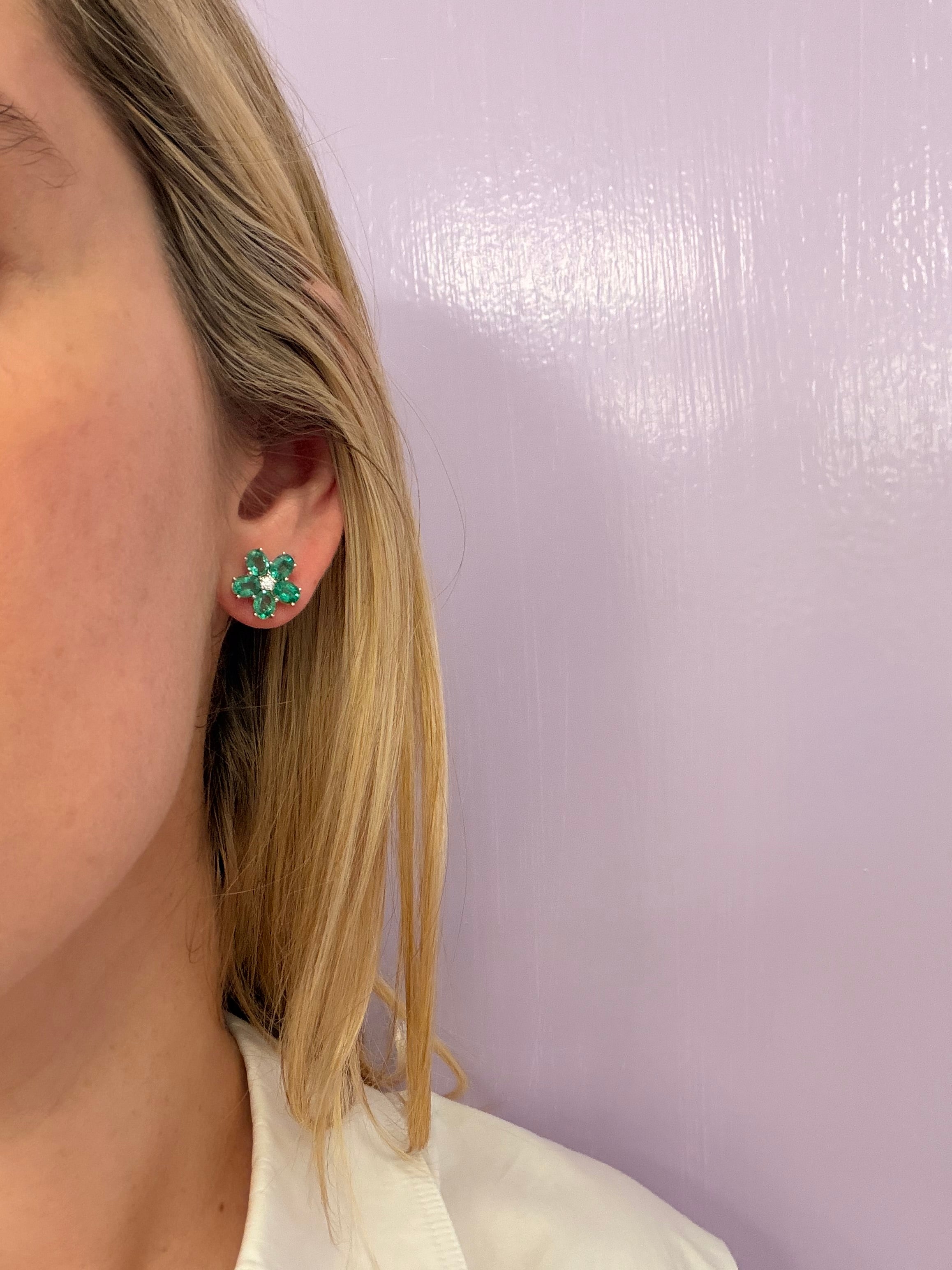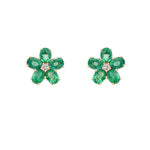 14K Yellow Gold Emerald and Diamond Flower Earrings