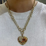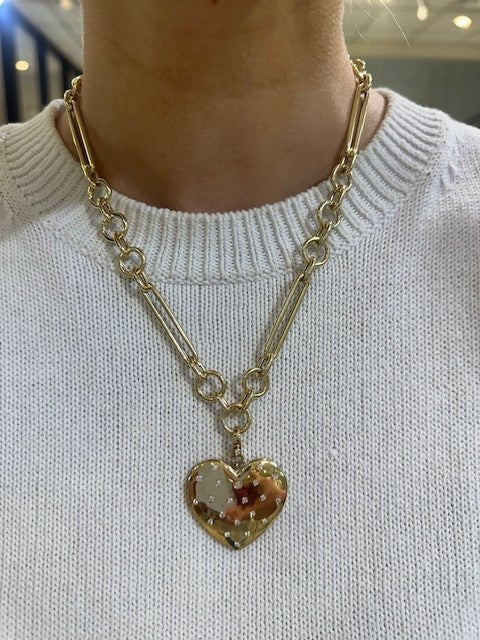 14K Yellow Gold Heart Charm with Scattered Diamonds