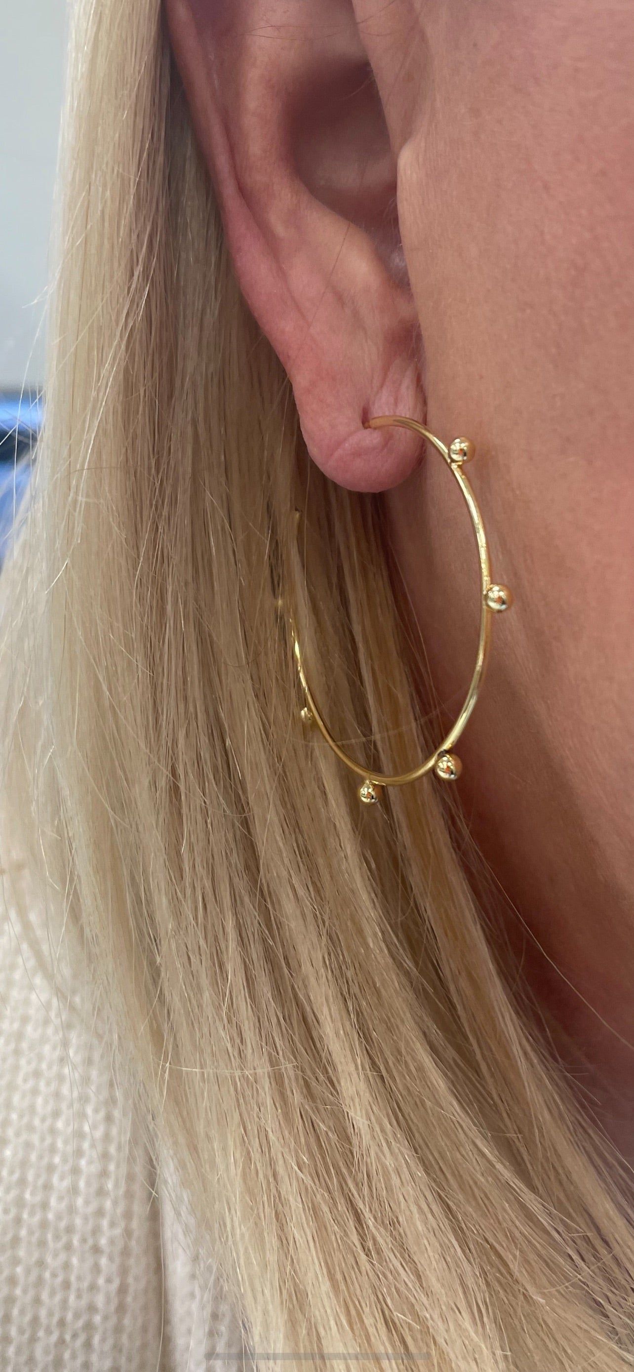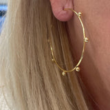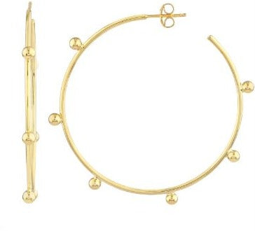 14k Yellow Gold Large Beaded Wire Post Hoops