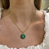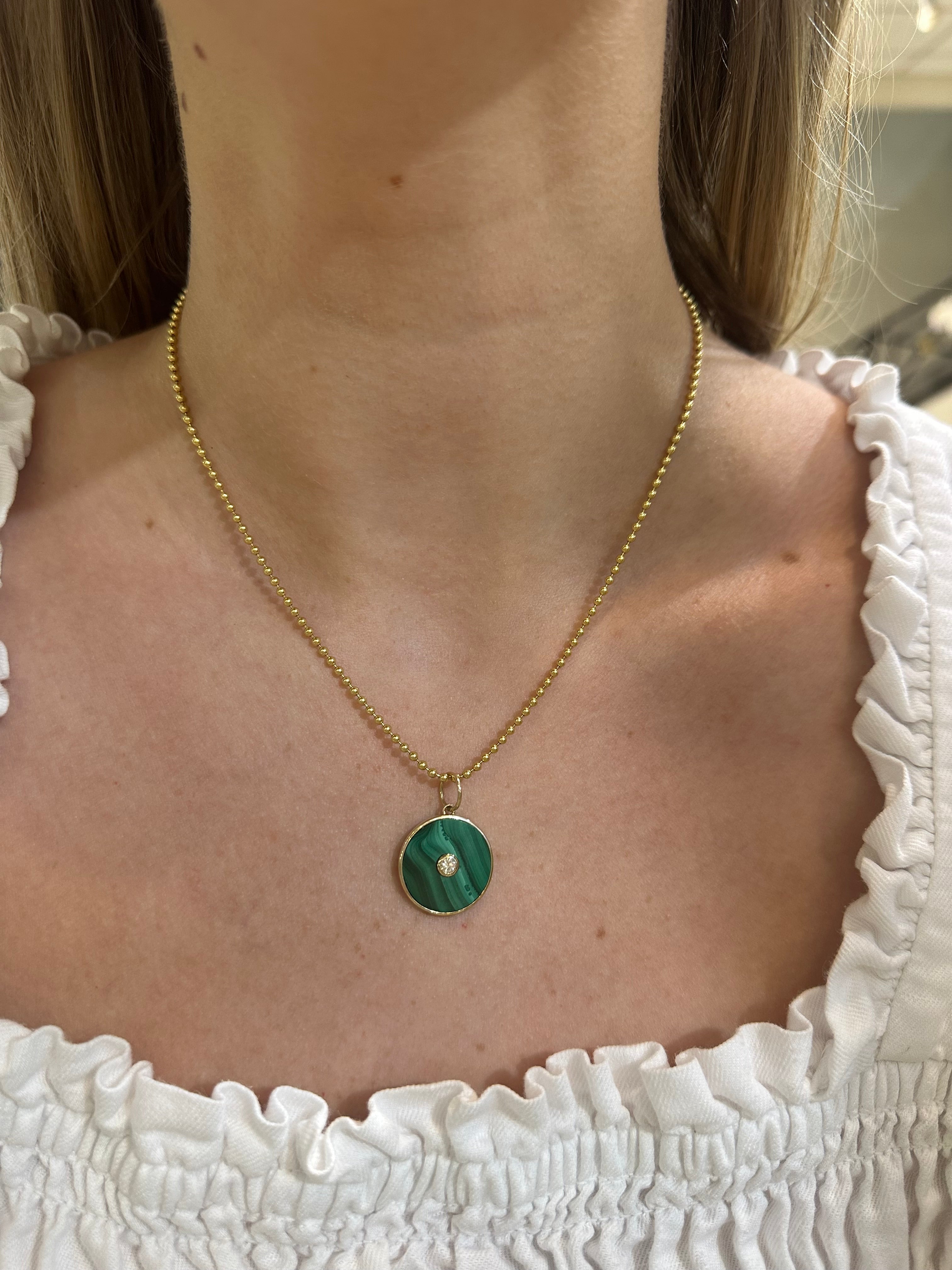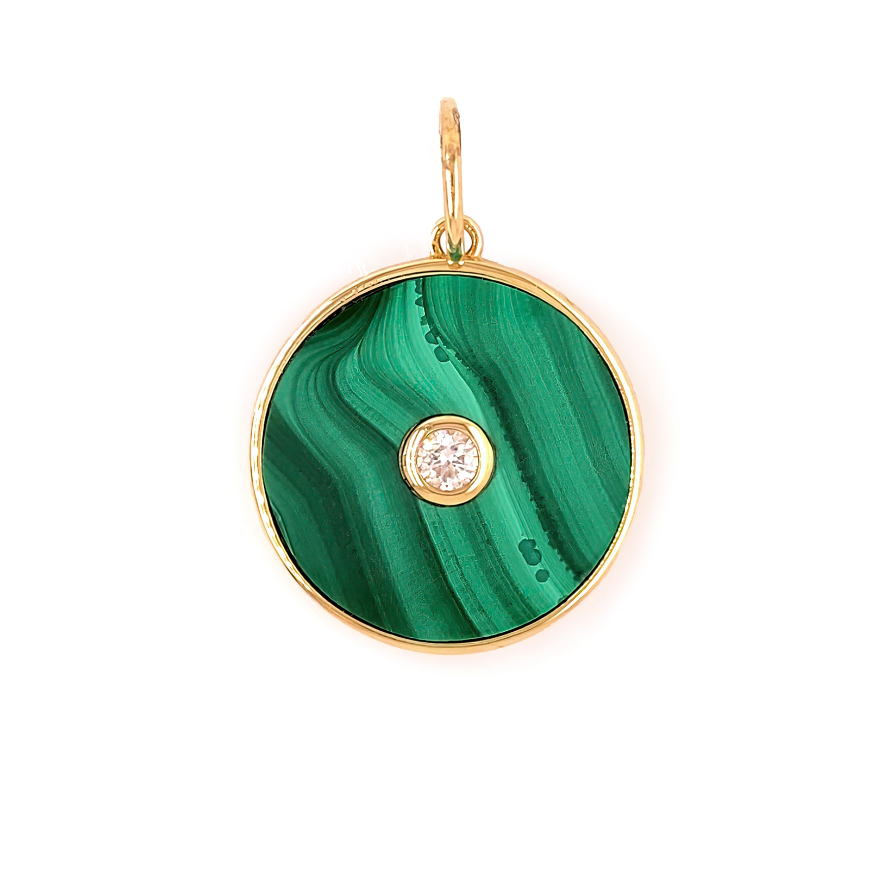 14K Yellow Gold Malachite Pendant with Single Diamond