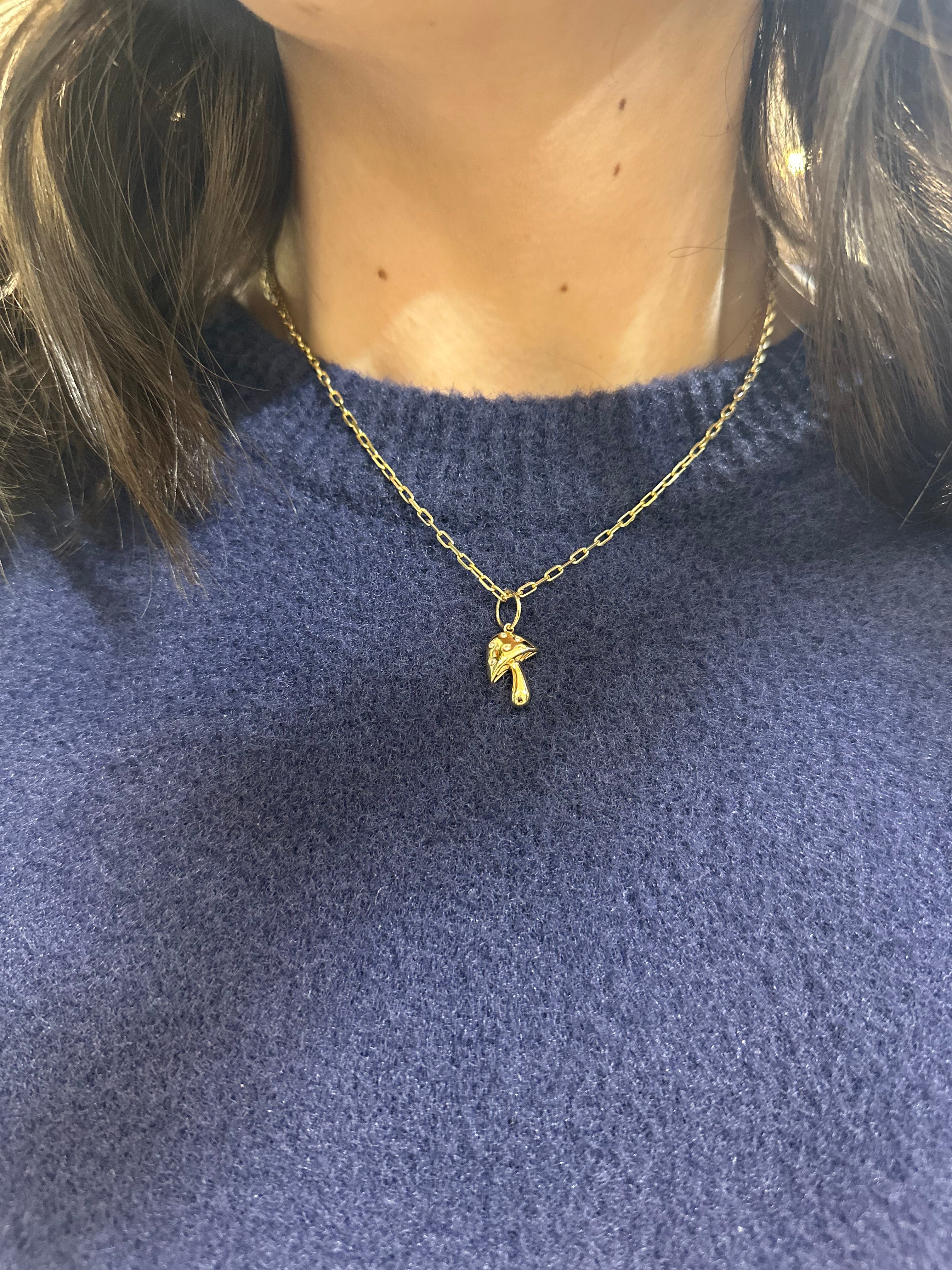 14k Yellow Gold Mini Mushroom Pendant