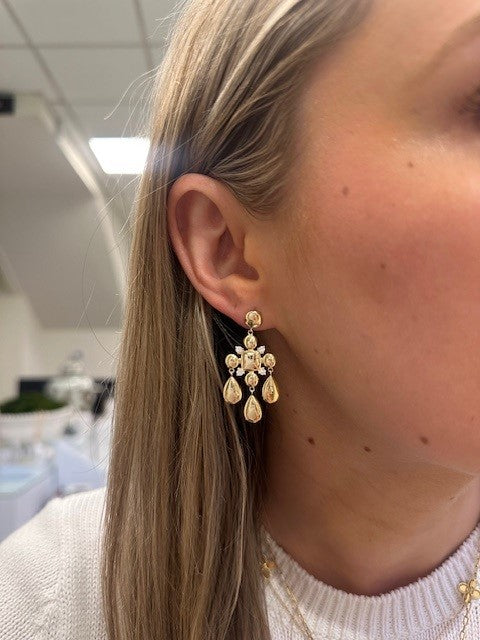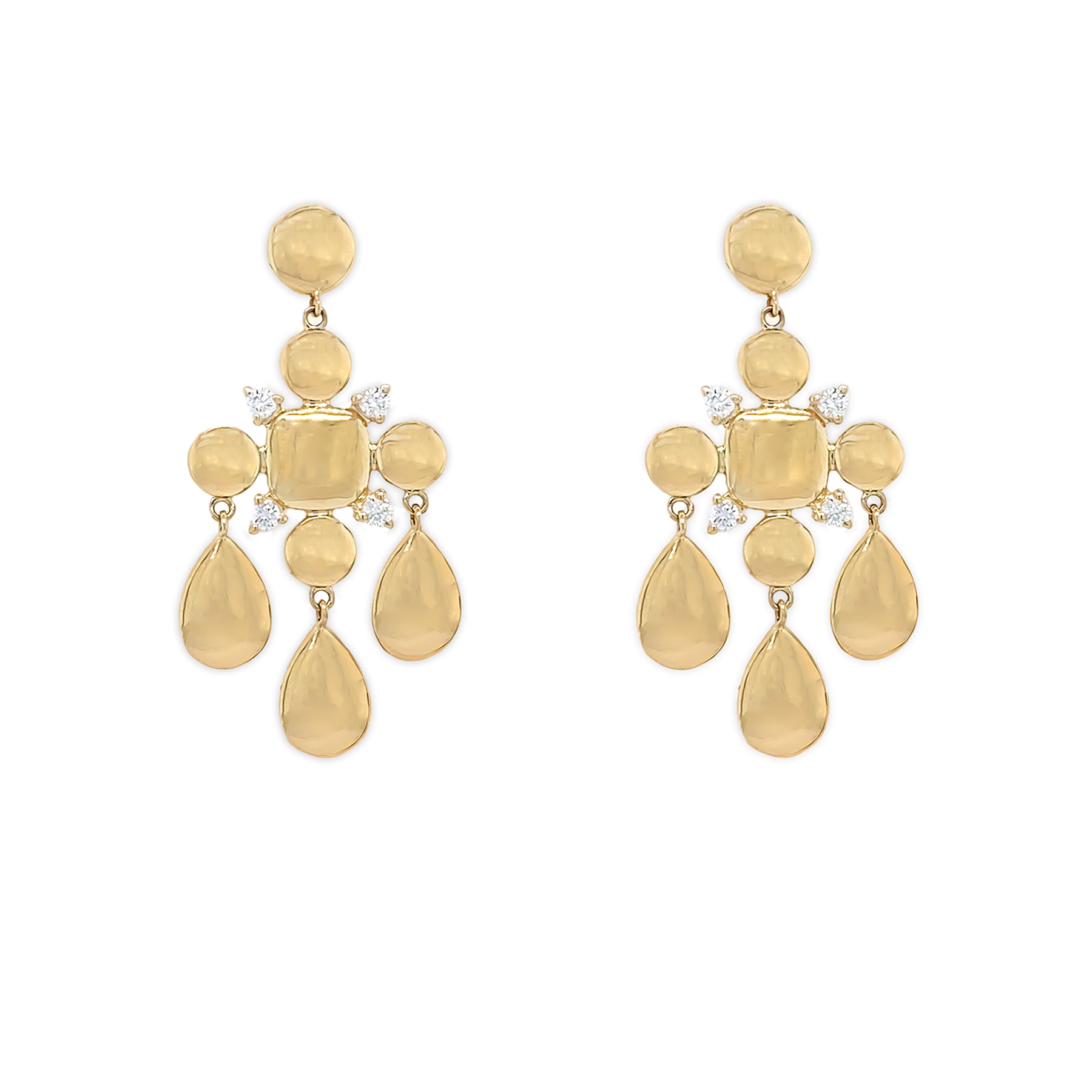 14K Yellow Gold Mixed Shape Diamond Earrings