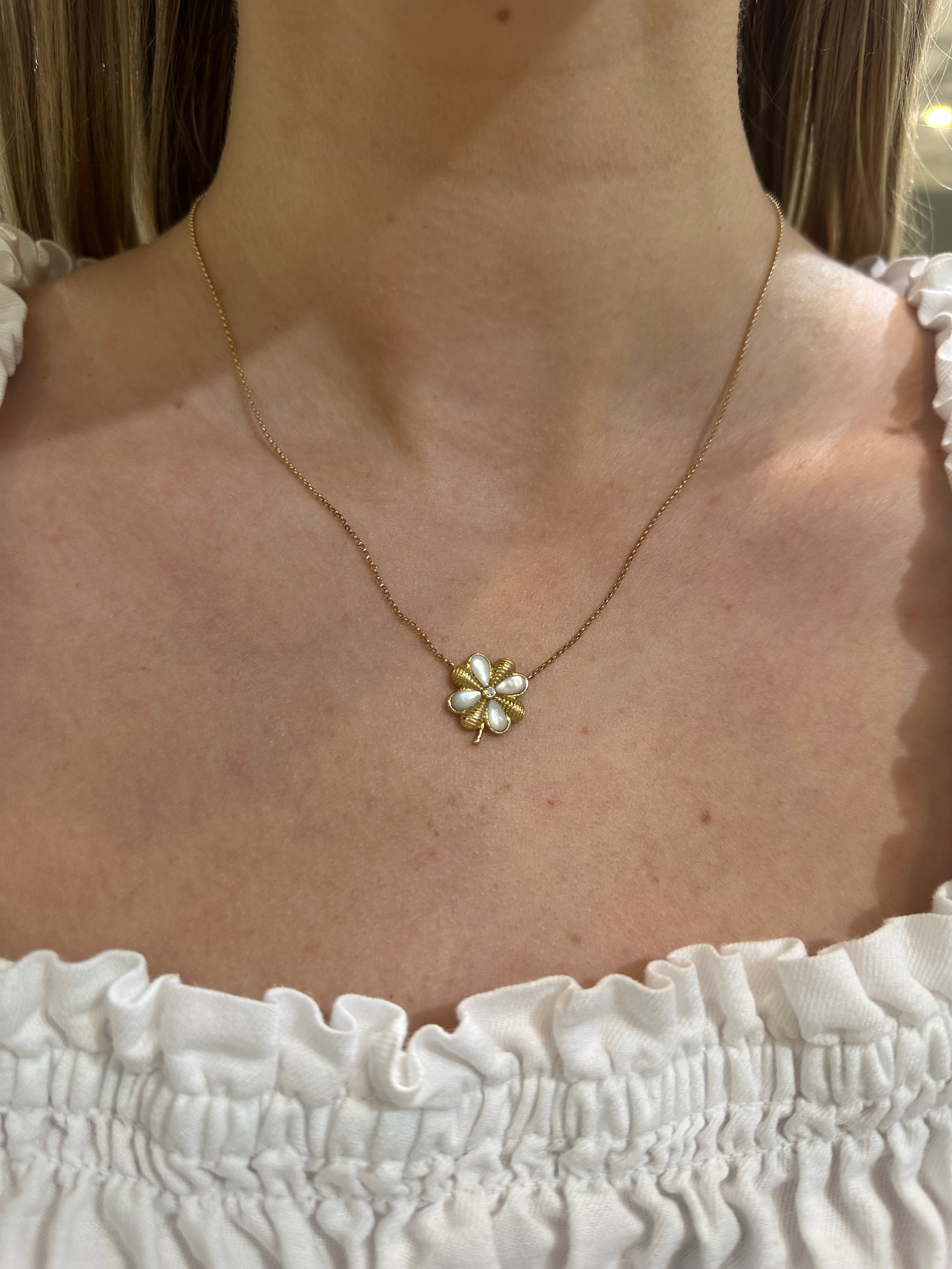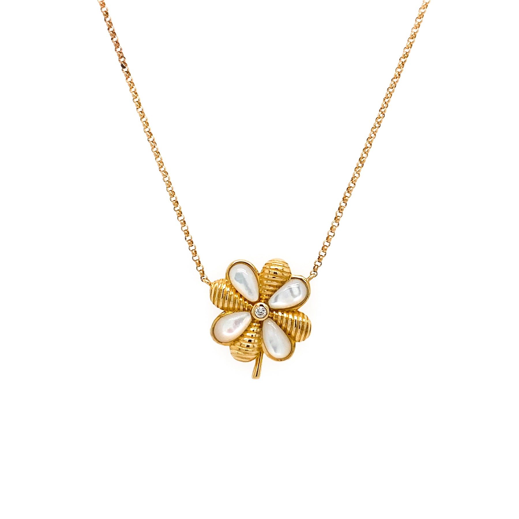 14K Yellow Gold Mother of Pearl Clover Necklace