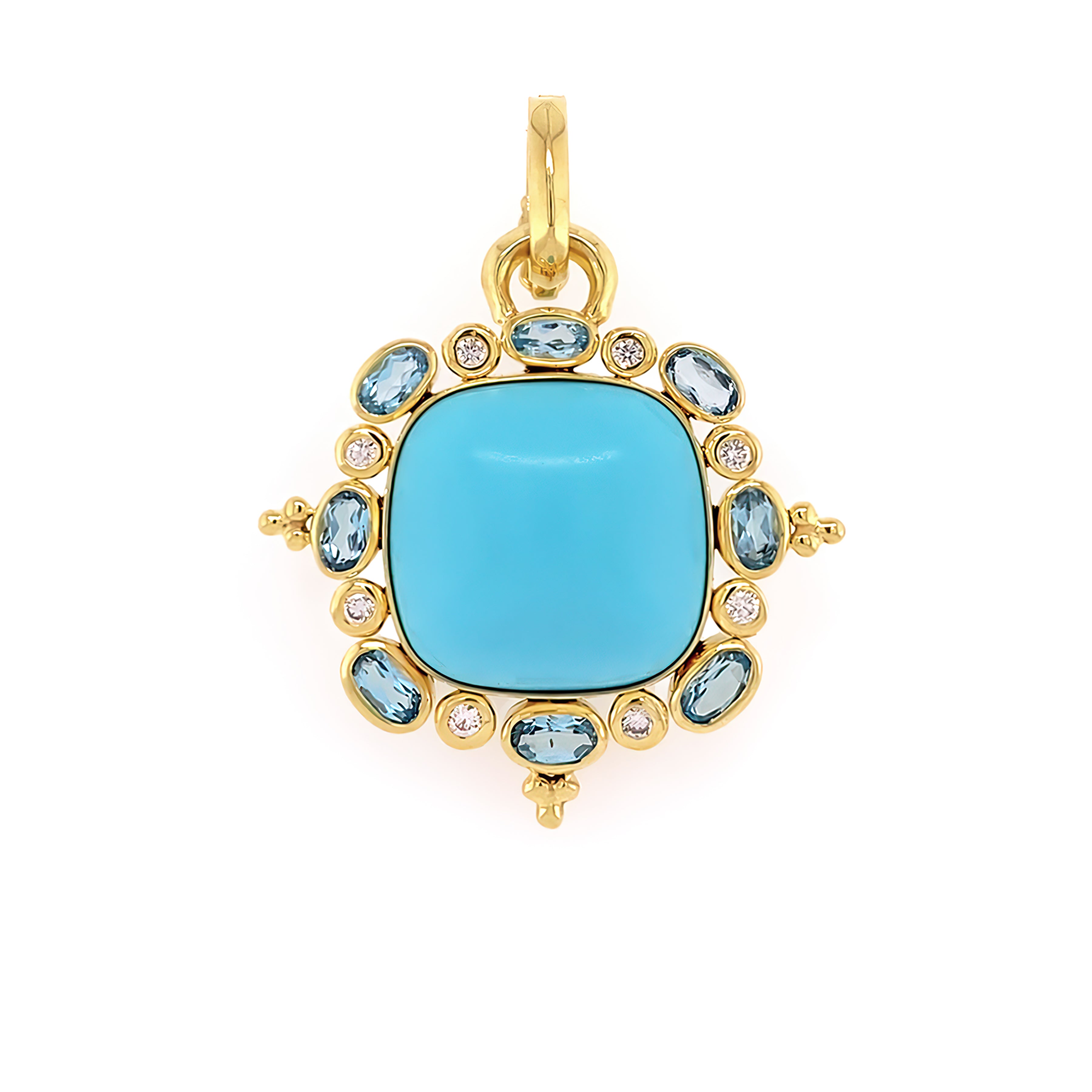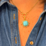14K Yellow Gold Turquoise Pendant with Blue Topaz