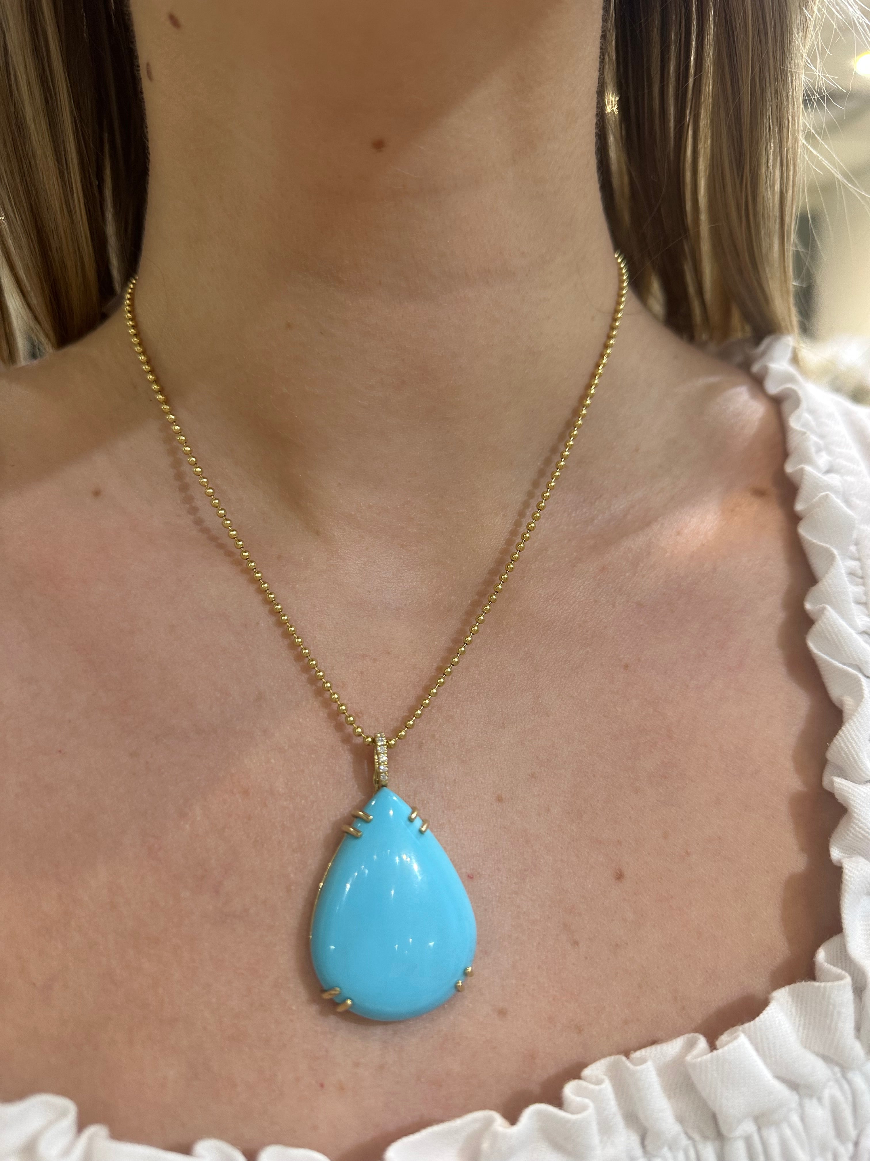 14K Yellow Gold Turquoise Pendant with Diamonds