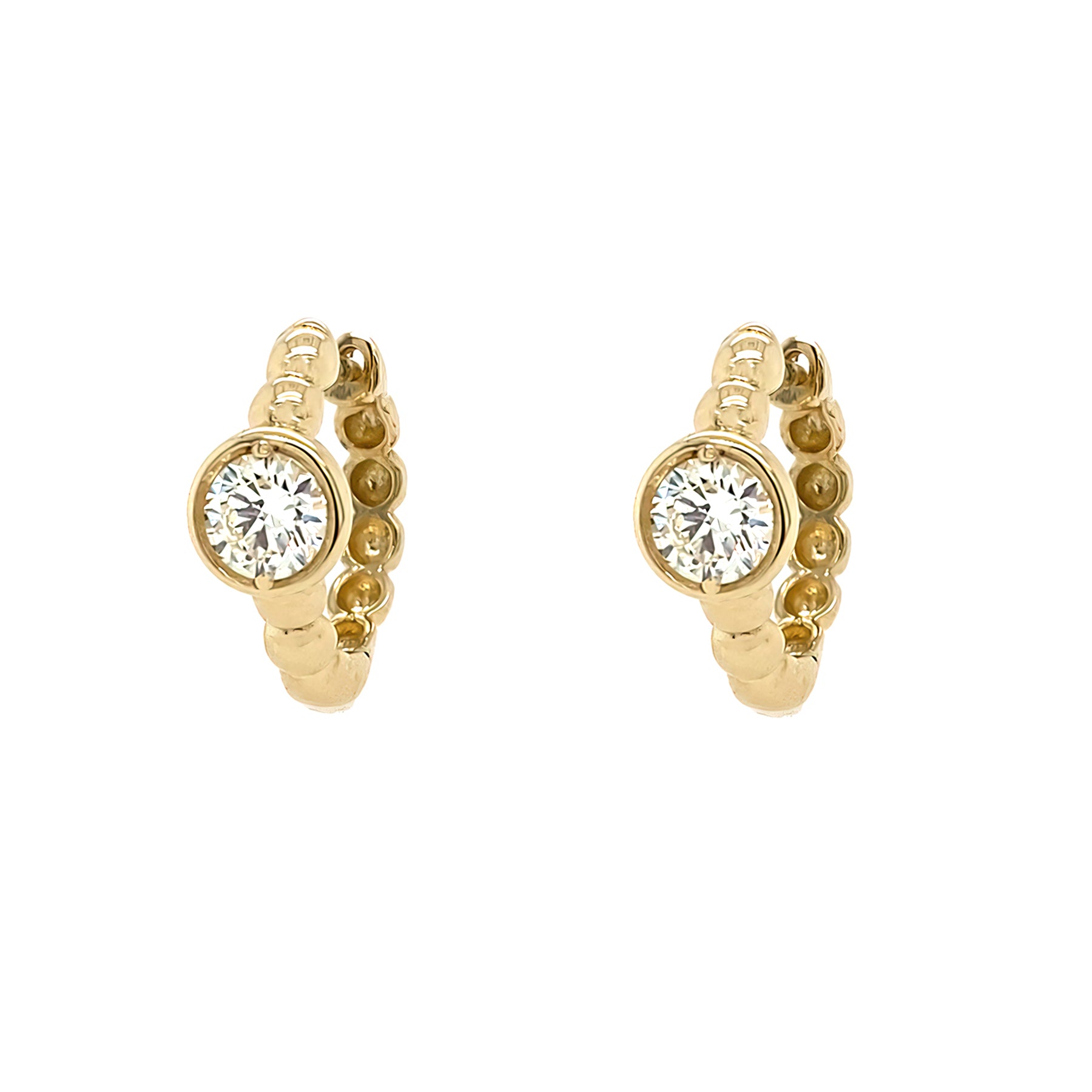 14K Yellow Gold Twisted Rope Diamond Bezel Huggies