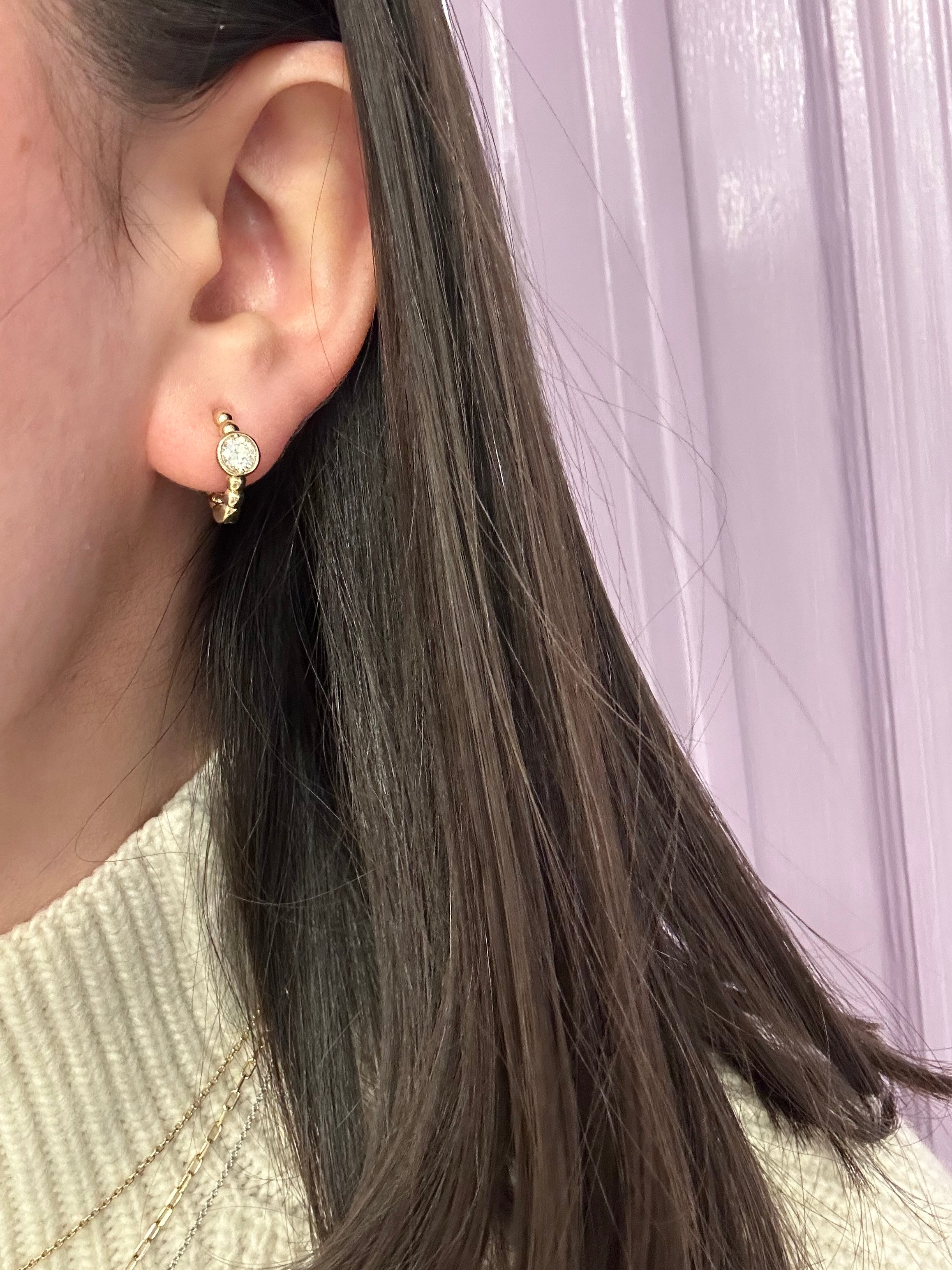 14K YG Twisted Rope Diamond Bezel Huggies