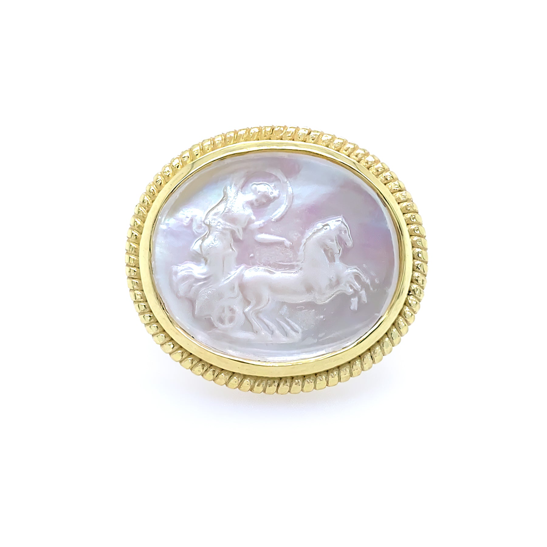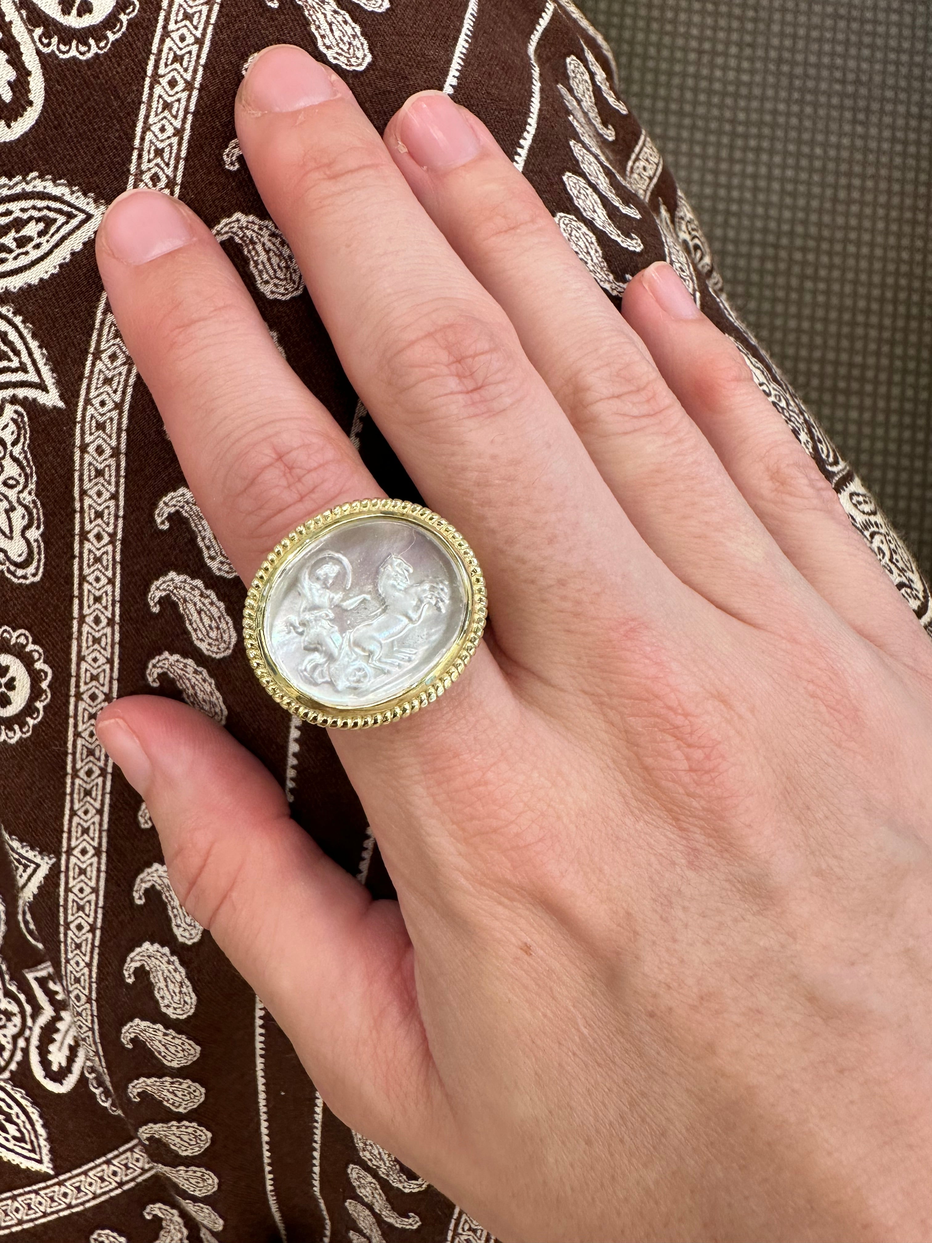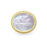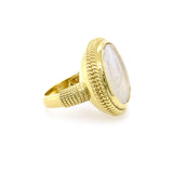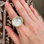 14K Yellow Gold White Venetian Glass Ring