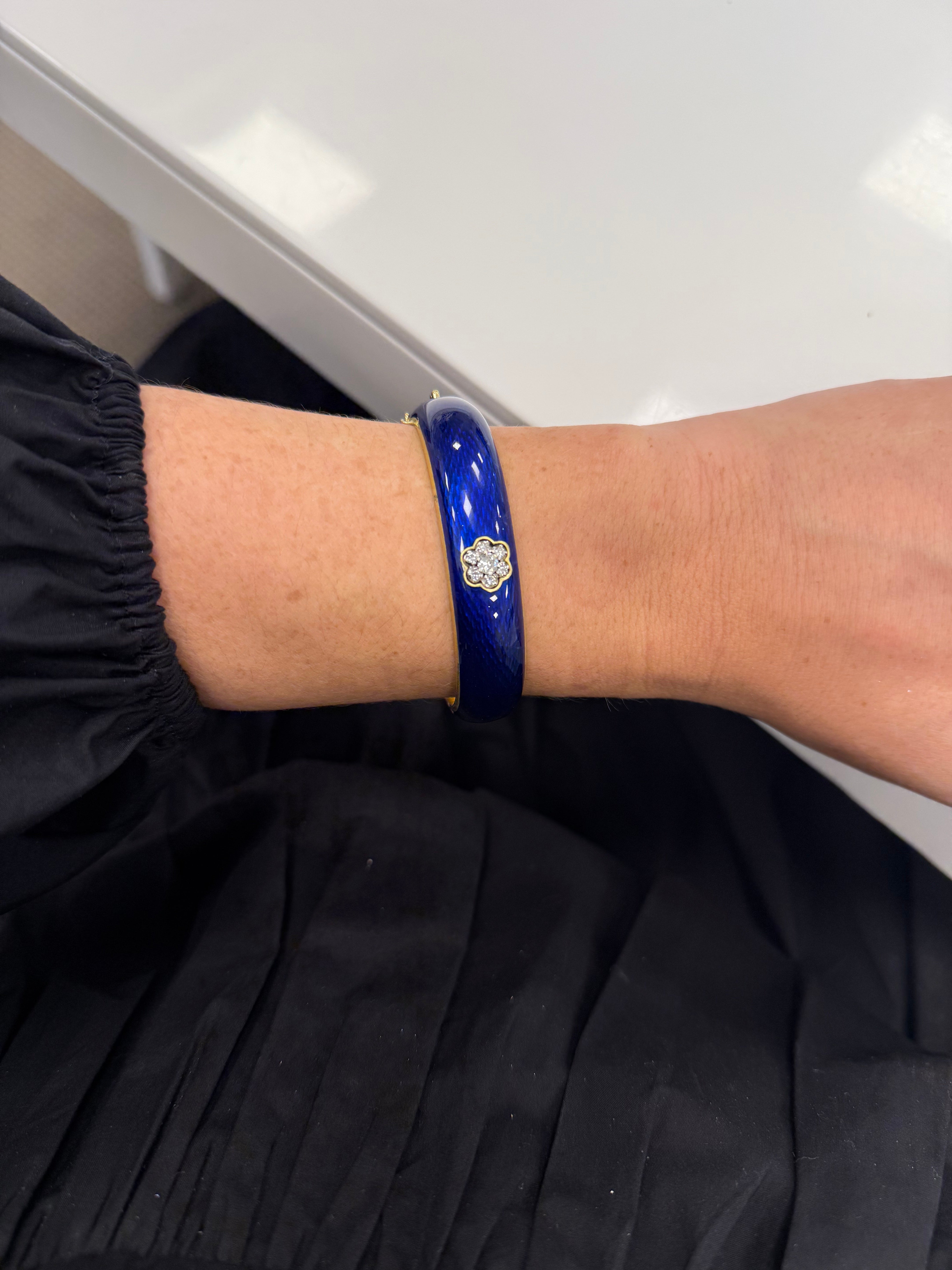18K YG Blue Enamel Bracelet with Diamonds