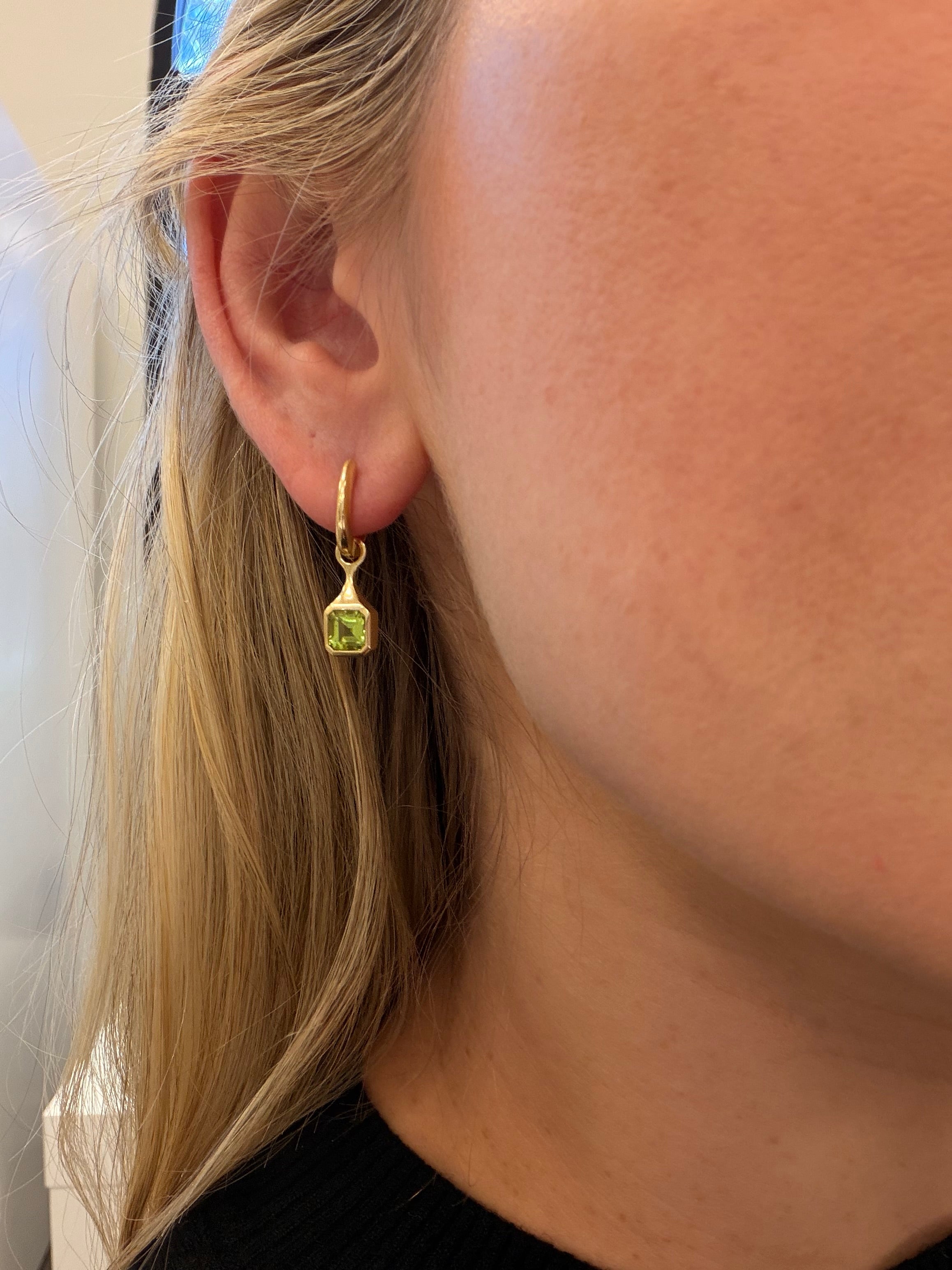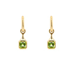 18K Yellow Gold Cushion Cut Peridot Drop Earrings