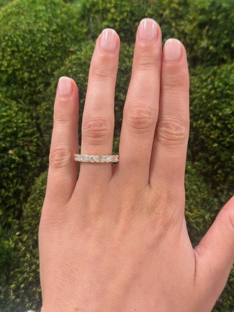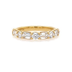 18K Yellow Gold Diamond Alternating Baguette and Round Band