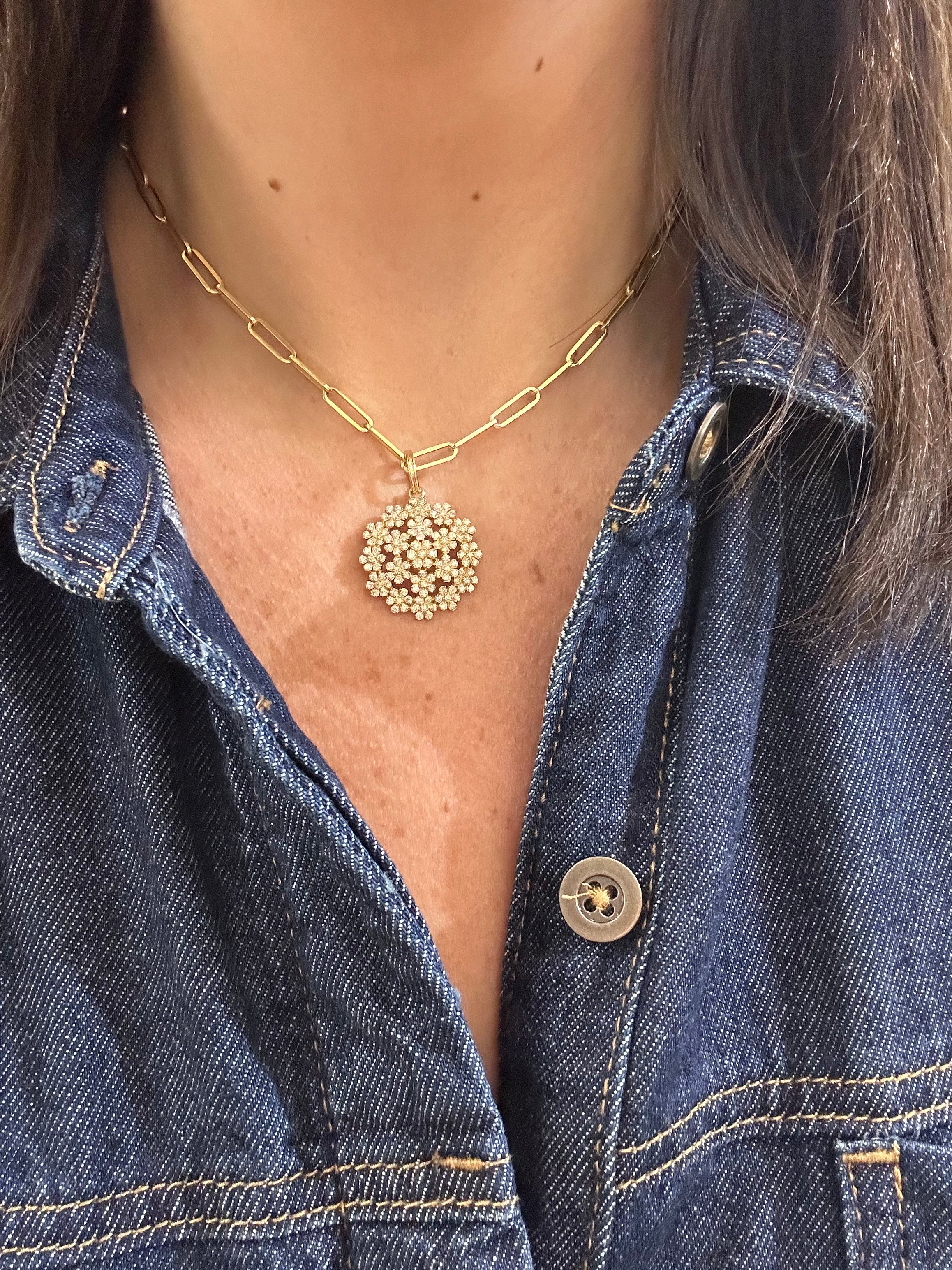18K yellow Gold Jardin Flower Bunch Pendant with Diamonds