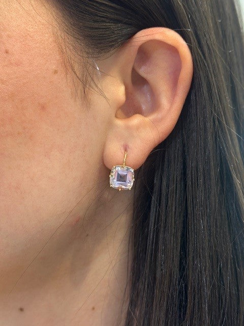18K Yellow Gold Lavender Cushion Cut Amethyst Earrings