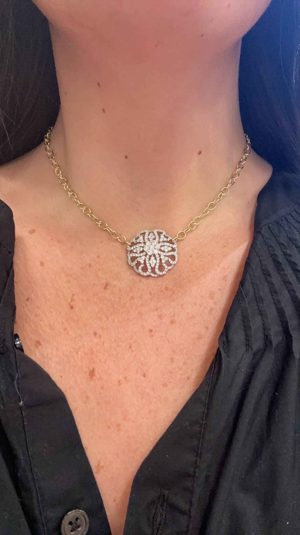 18K Yellow Gold Oval Link Chain with Diamond Pendant