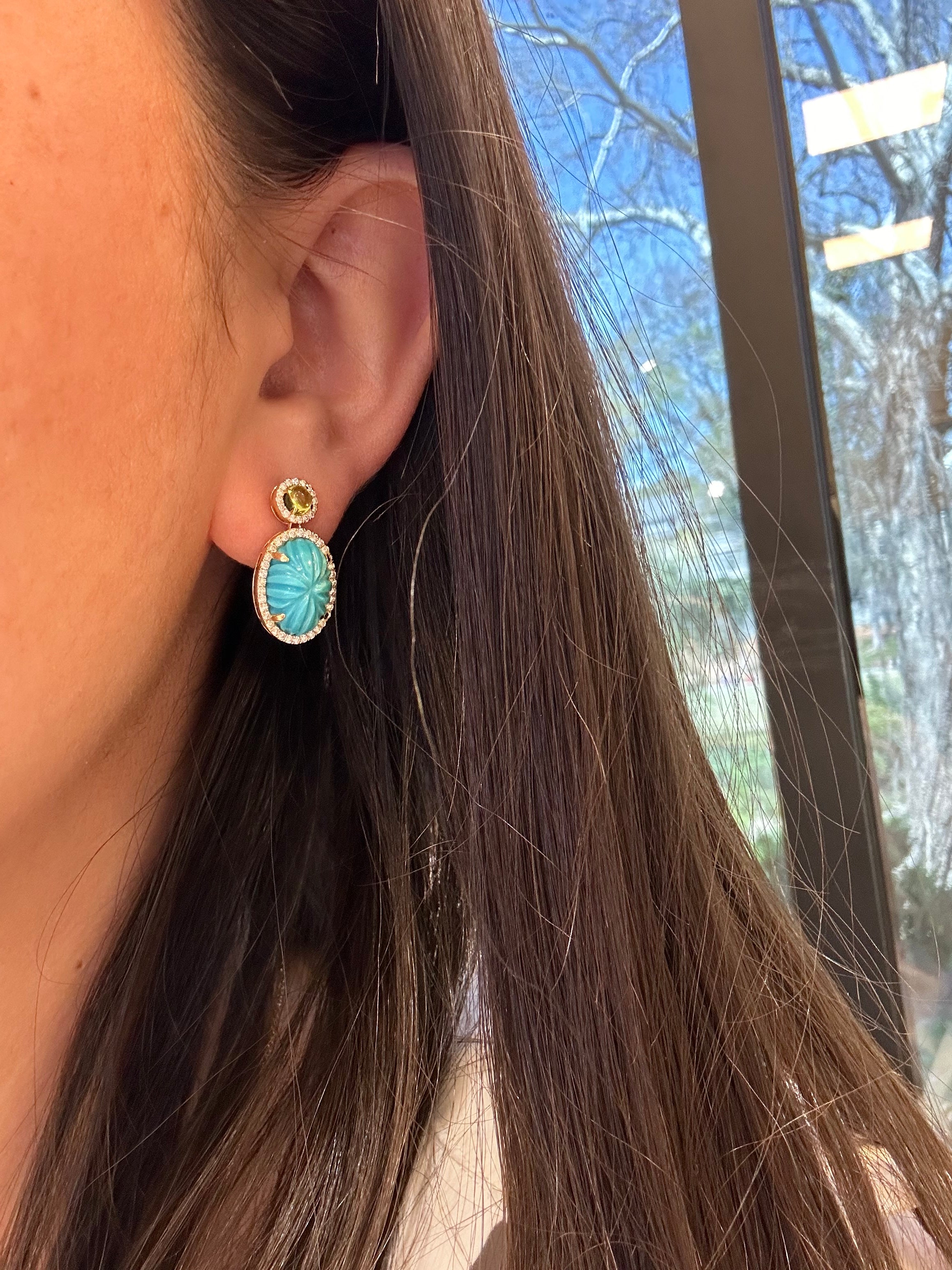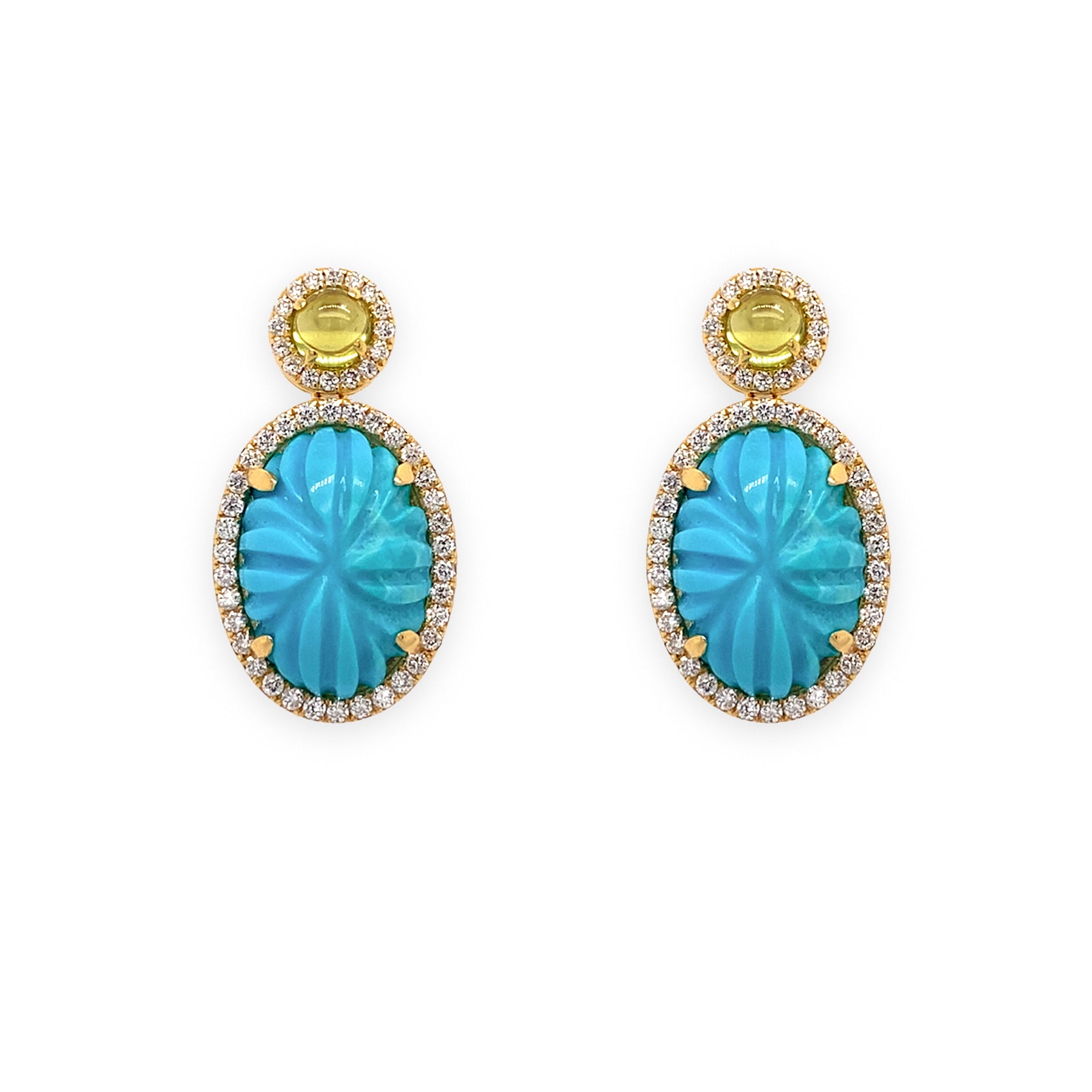 18K Yellow Gold Turquoise Drop Earrings with Peridot