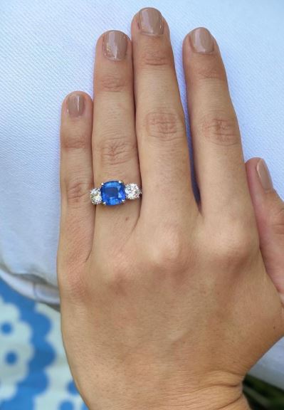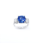 Platinum Sri Lanka Cushion Cut Sapphire and with Diamonds