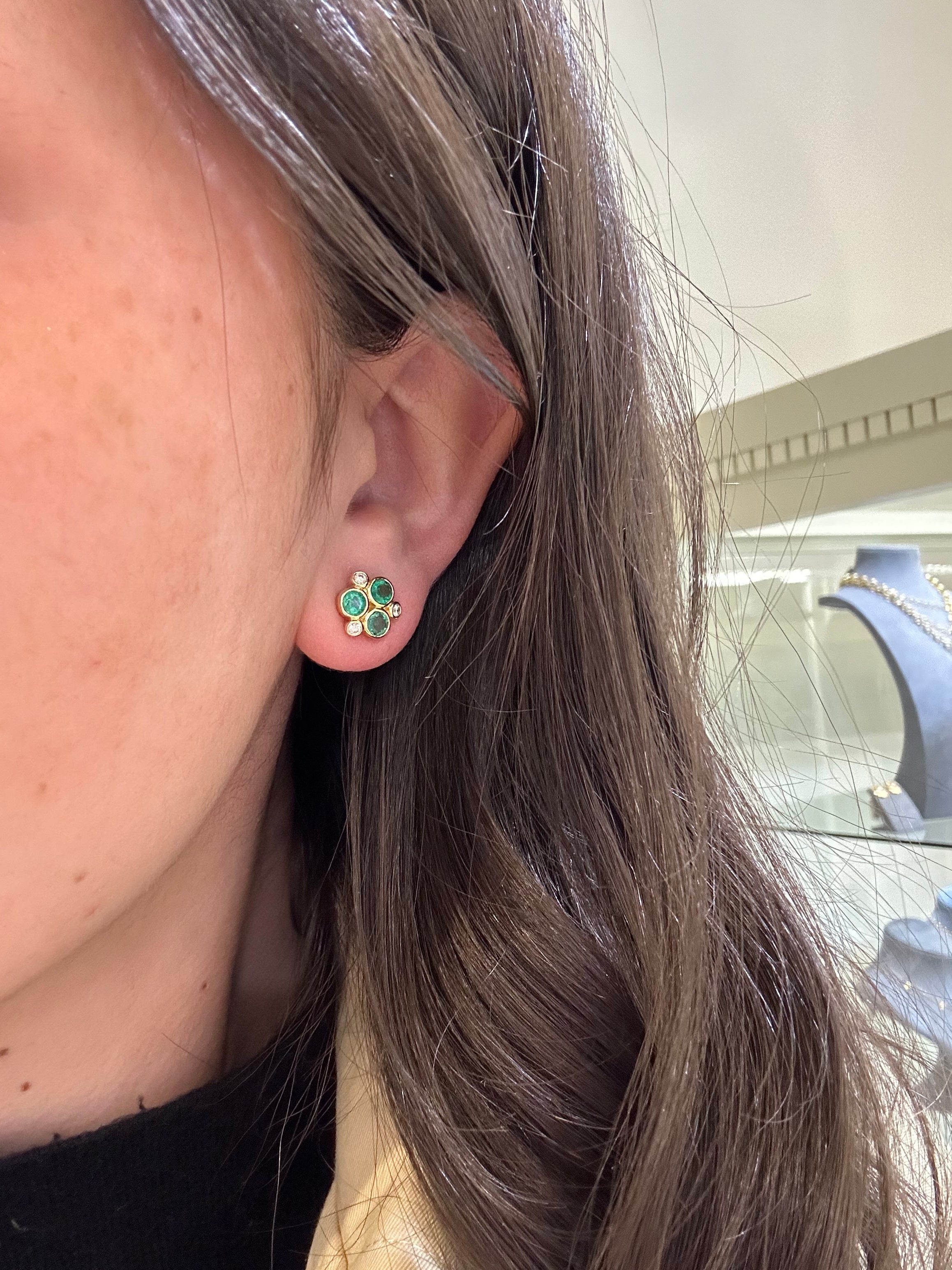 Temple St. Clair 18k Yellow Gold Emerald and Diamond Studs