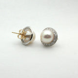 18K White Gold Diamond and Pearl Studs