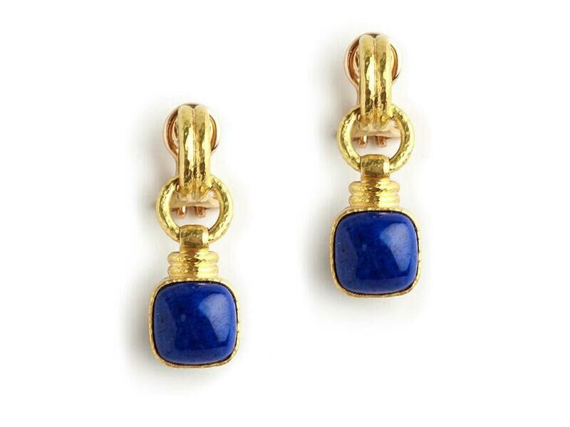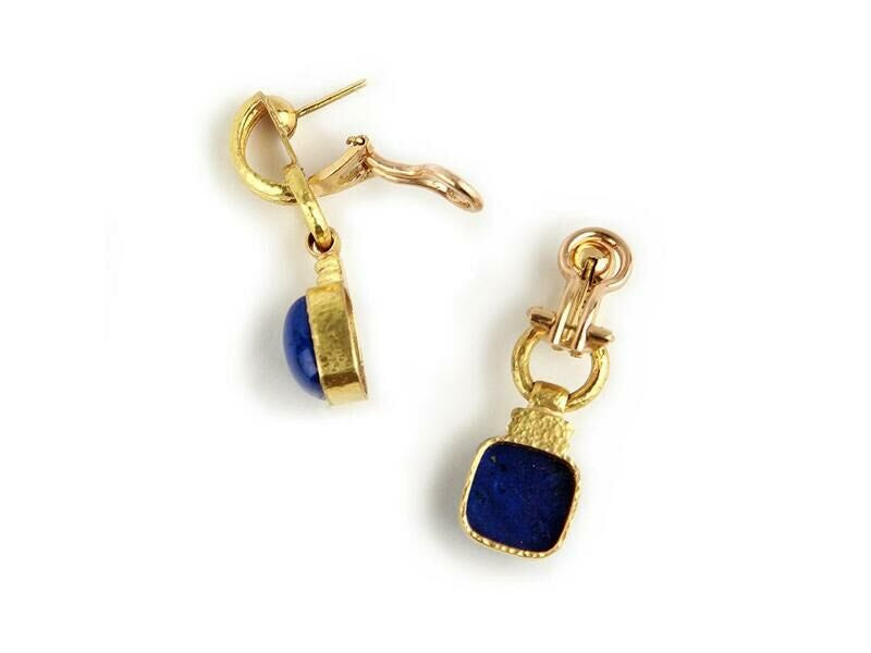 Elizabeth Locke 19K Yellow Gold Lapis Drop Earrings