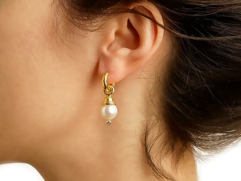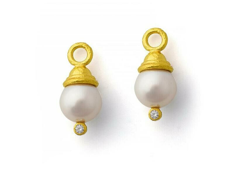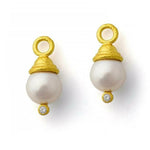 Elizabeth Locke 19K Yellow Gold Pearl and Diamond Earring Pendants