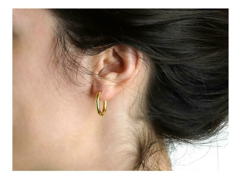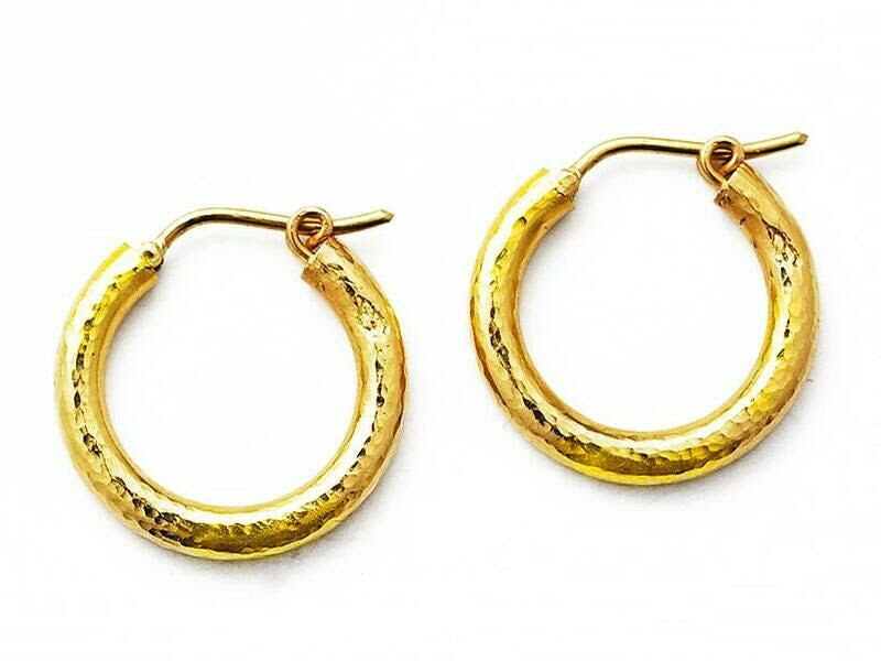Elizabeth Locke 19K Yellow Gold Small Hammered Hoop Earrings