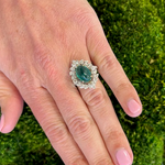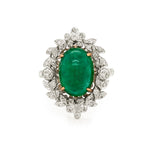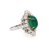 Estate 18K White Gold Cabochon Emerald Ring with Diamonds
