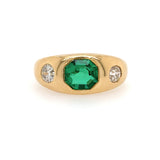 Estate 18K Yellow Gold Emerald and Diamond Ring