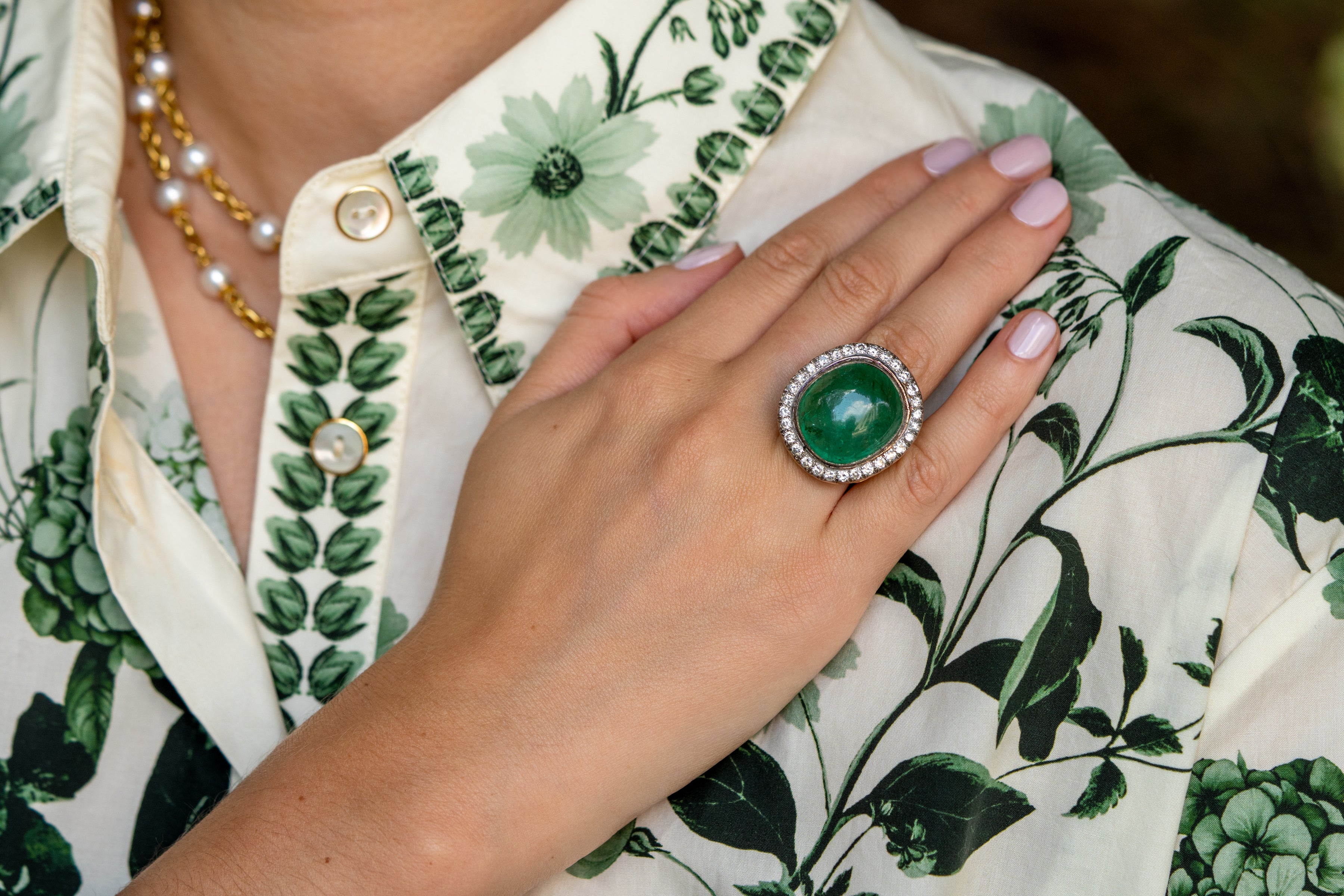 Estate 18K Yellow Gold Emerald and Diamond Ring