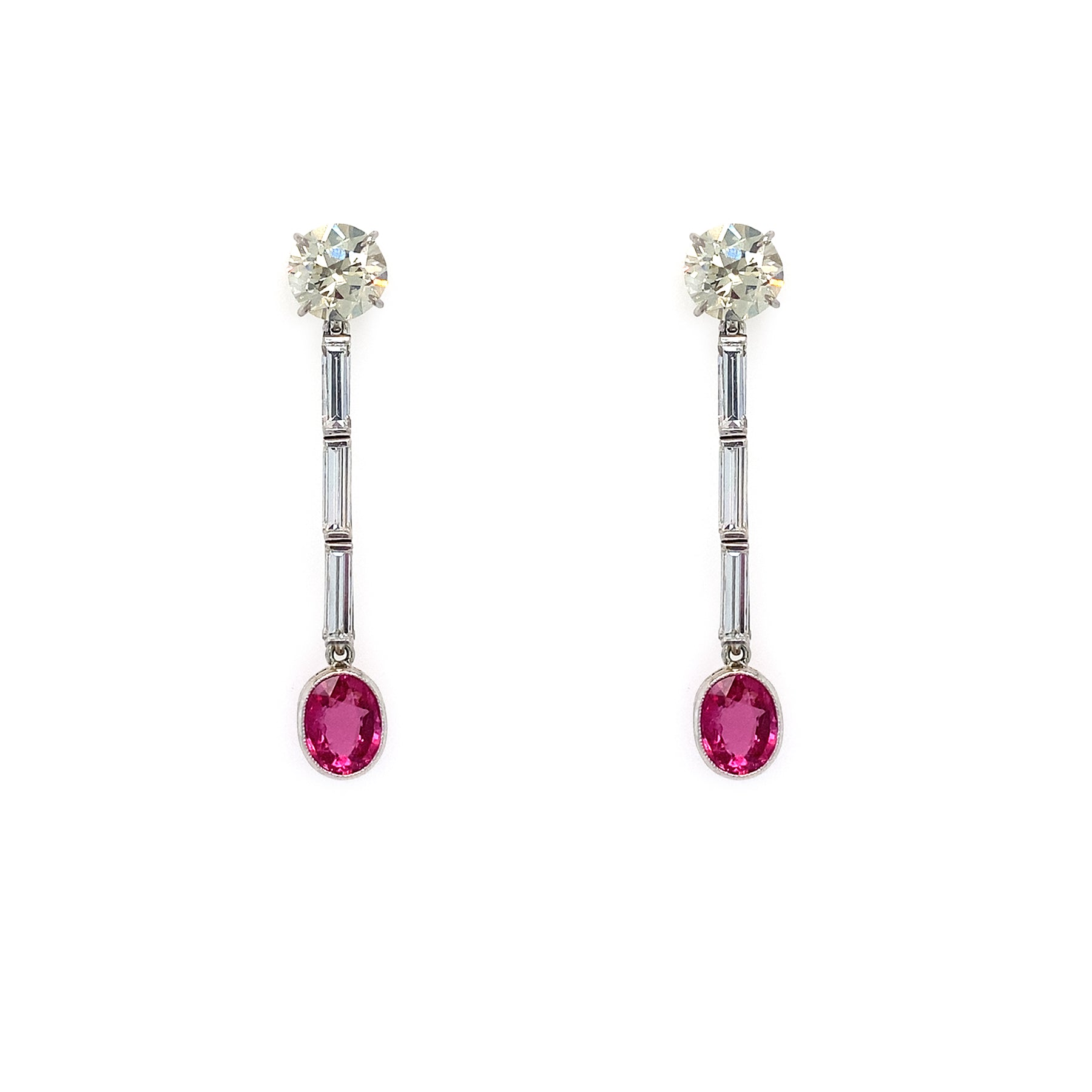 Estate Diamond and Pink Sapphire Earrings