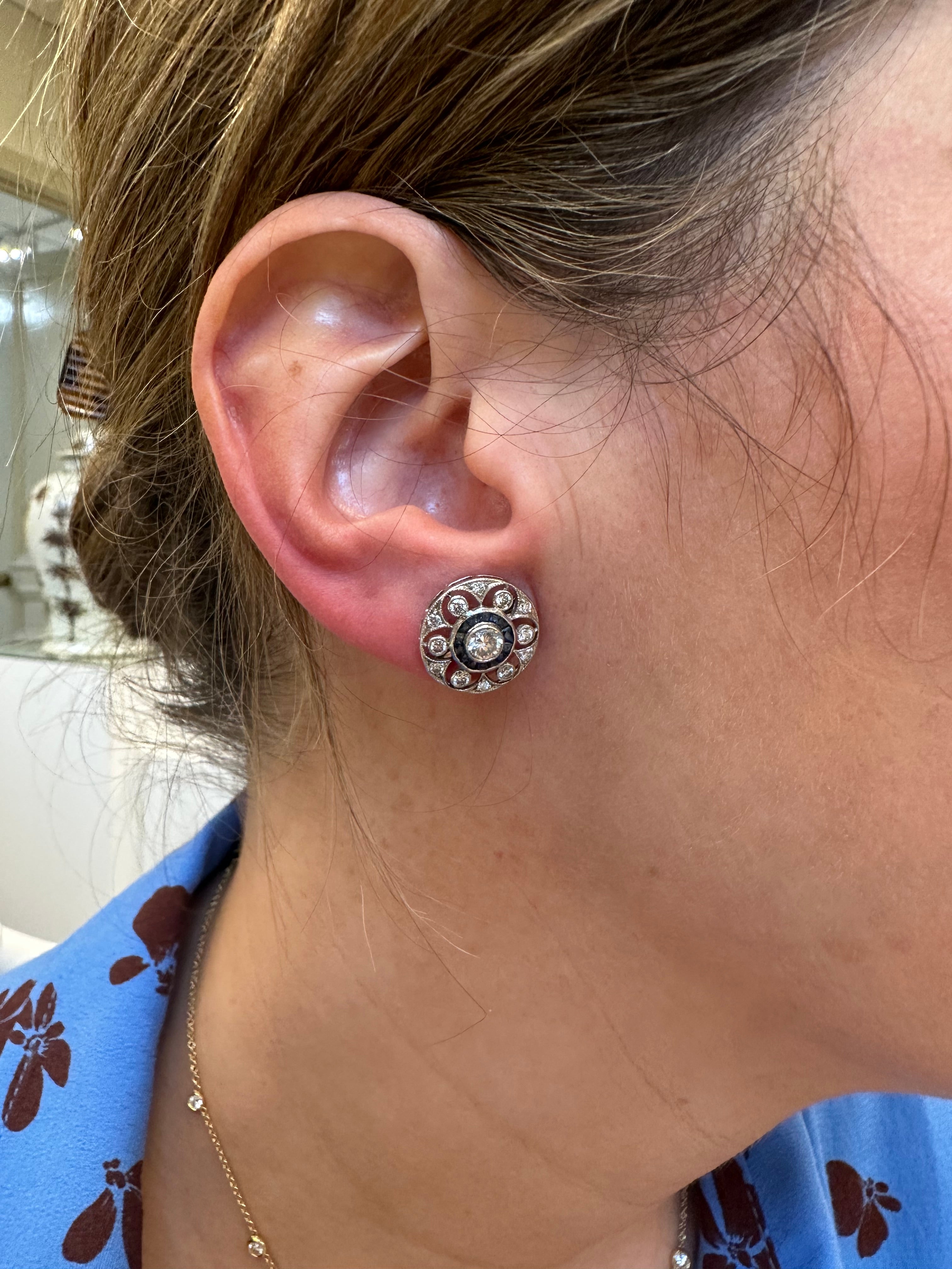 Estate Platinum Diamond and Sapphire Stud Earrings