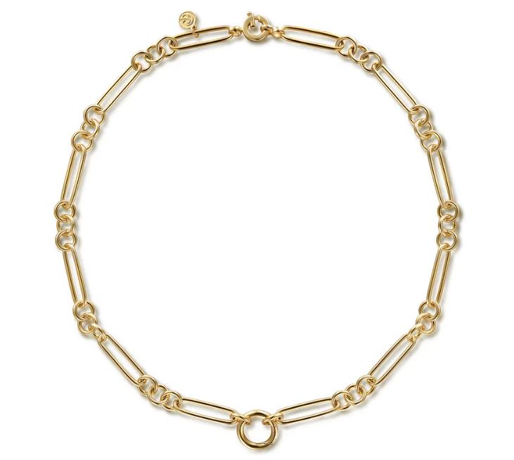 Gabriel & Co. 14K Yellow Gold Paper Clip Chain Necklace with Circle Stations